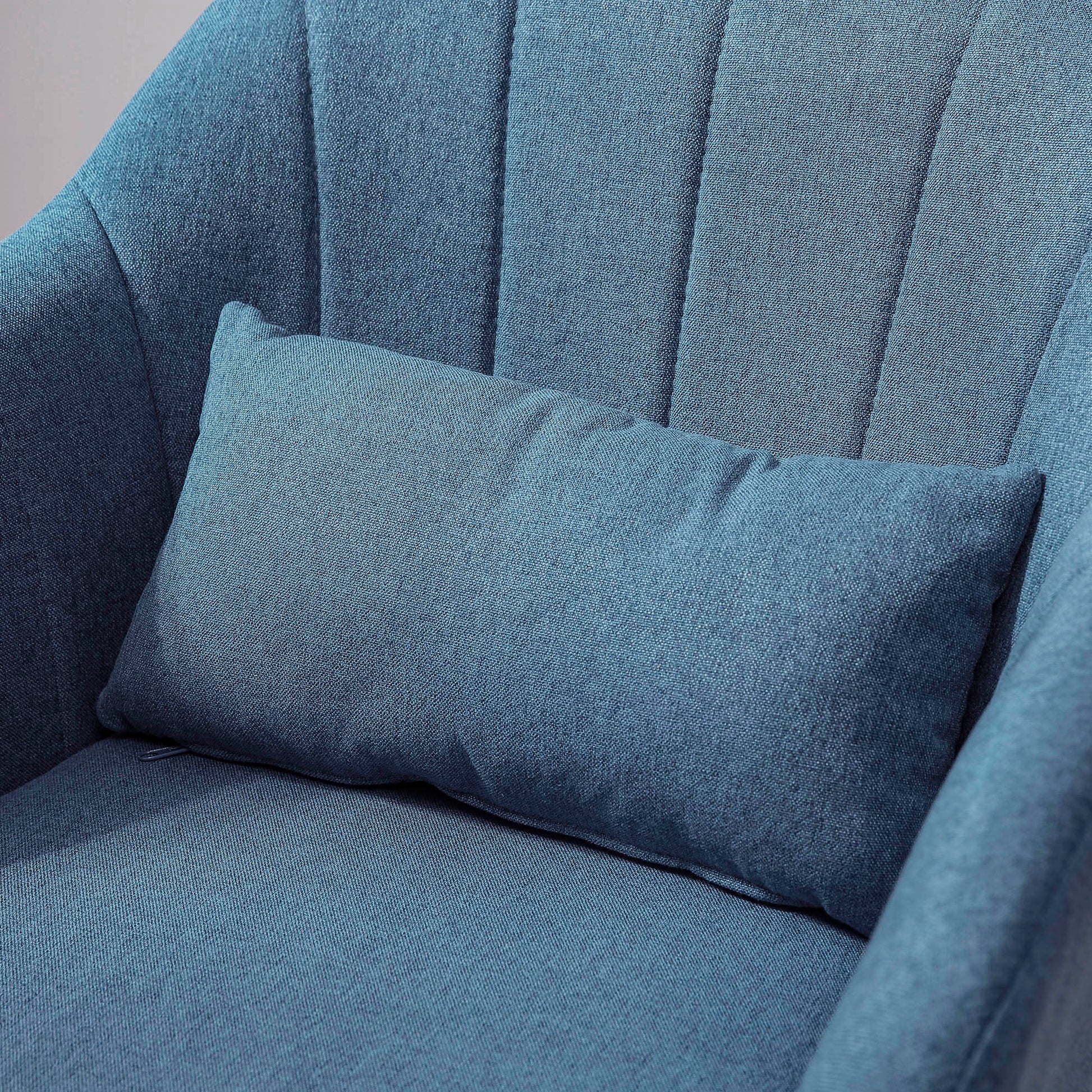 Swivel Accent Chair, Adjustable Height Thick Cushion Lumbar Support, Linen Fabric Blue