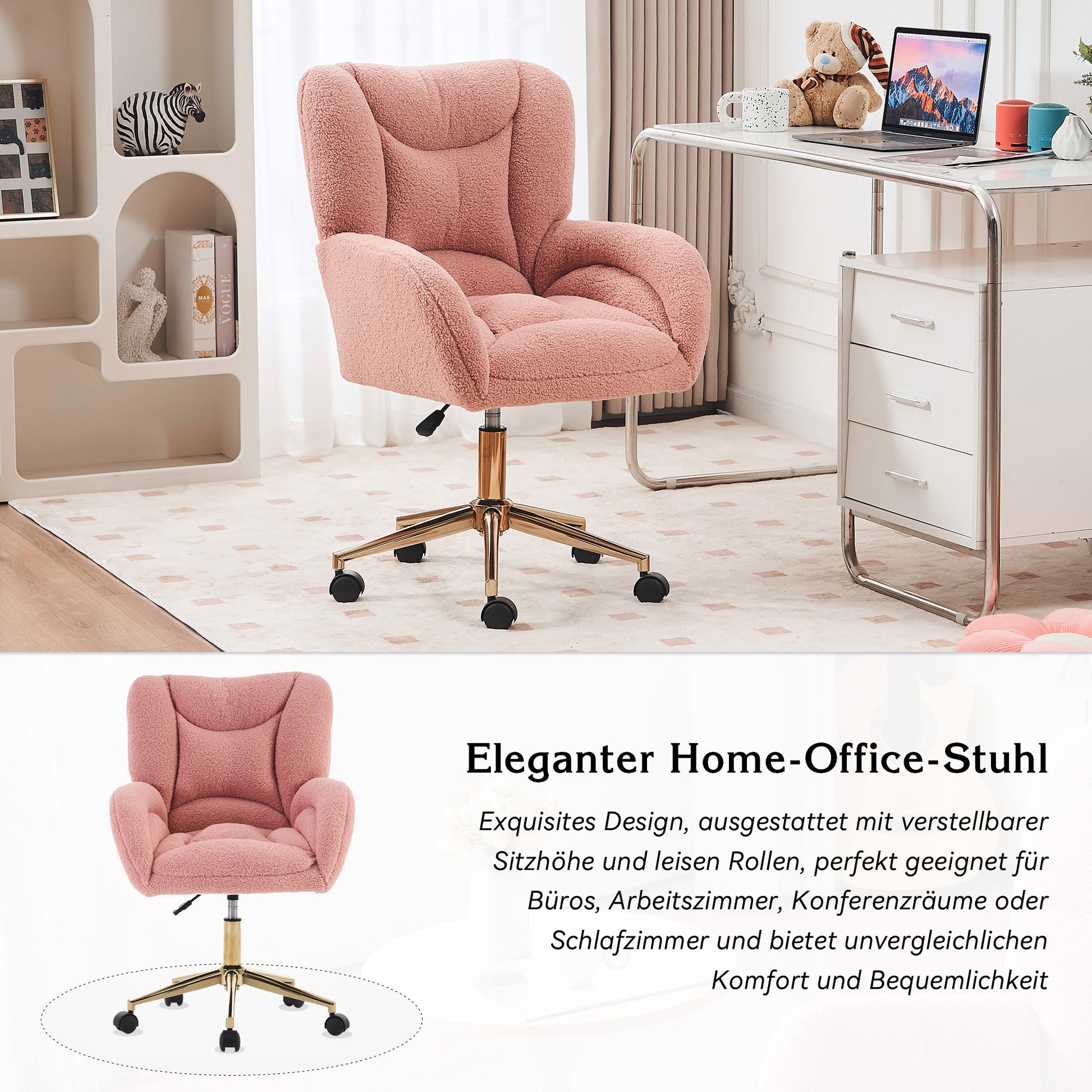 Swivel Chair Height-Adjustable Teddy Fabric Gold Legs - Pink