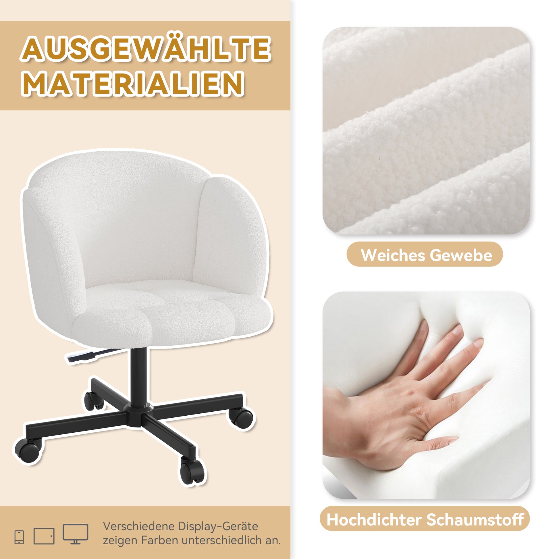 Swivel Desk Chair 360° Swivel Adjustable Height Teddy Beige
