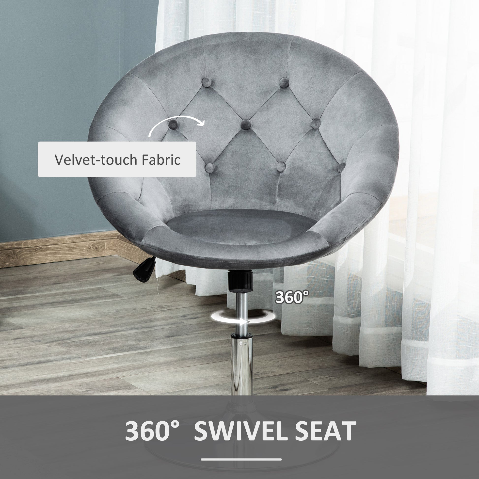 Swivel Dressing Stool, Adjustable Height Velvet Upholstered, Grey