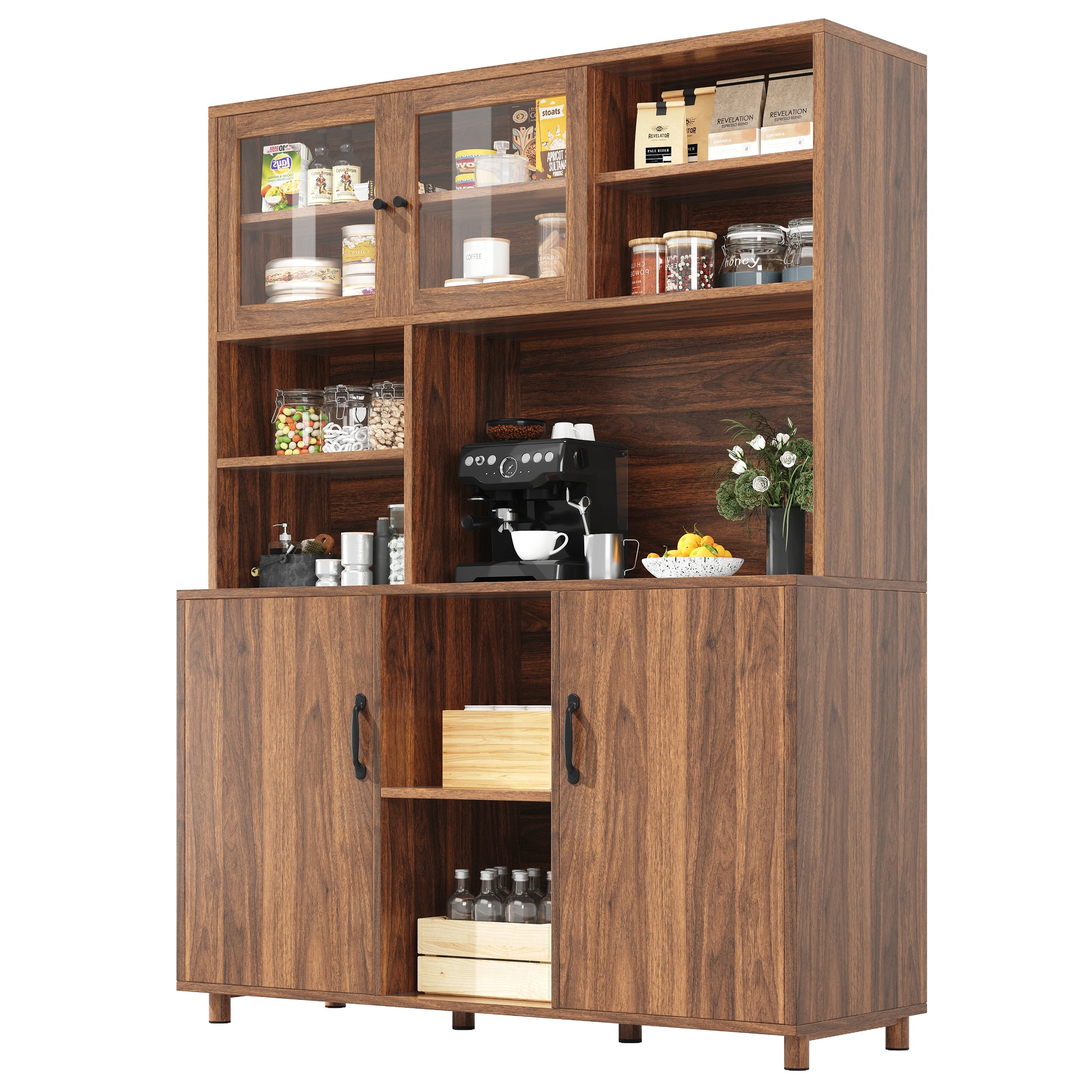 Tall Cabinet with LED Lighting, Snack Shelf, Retro - Walnut