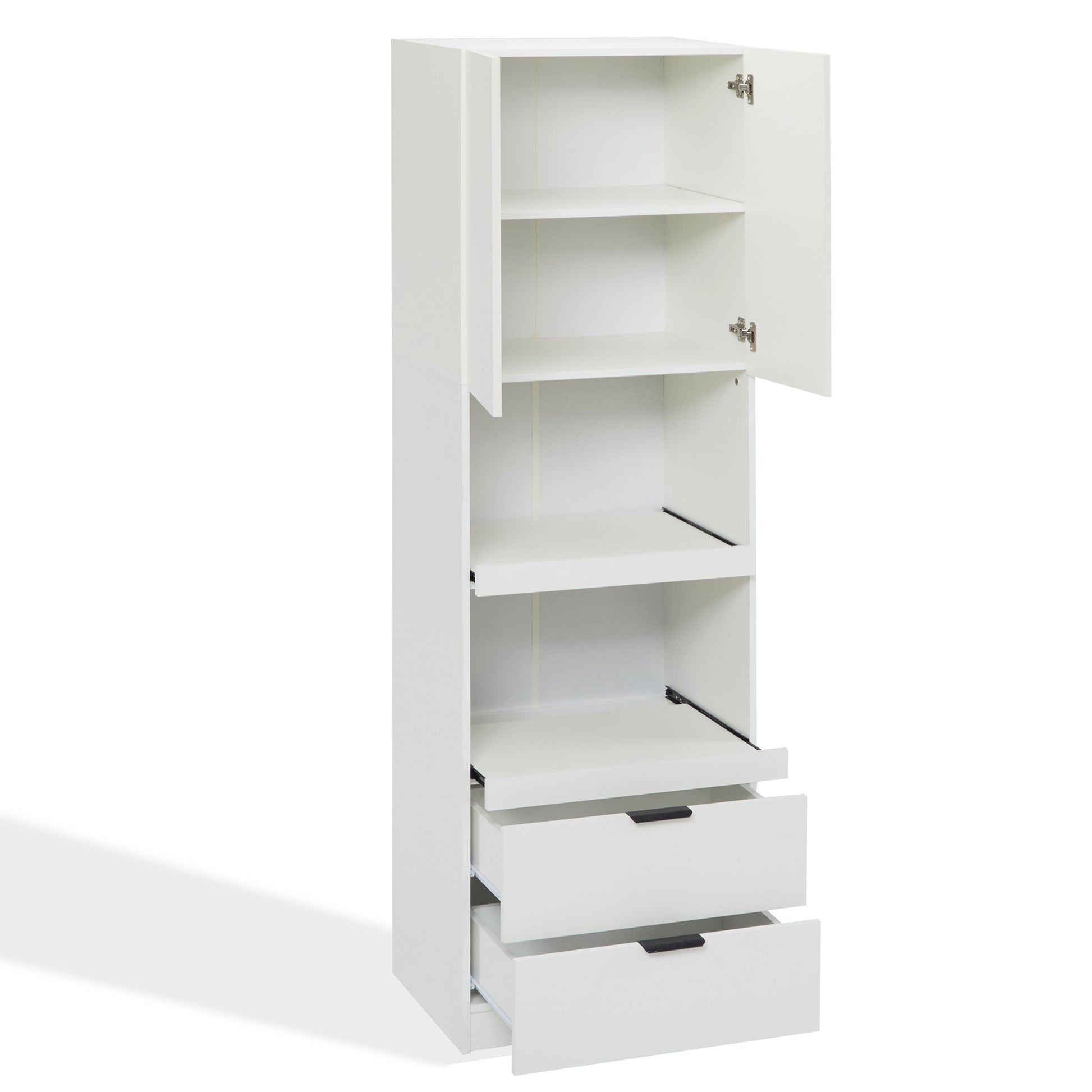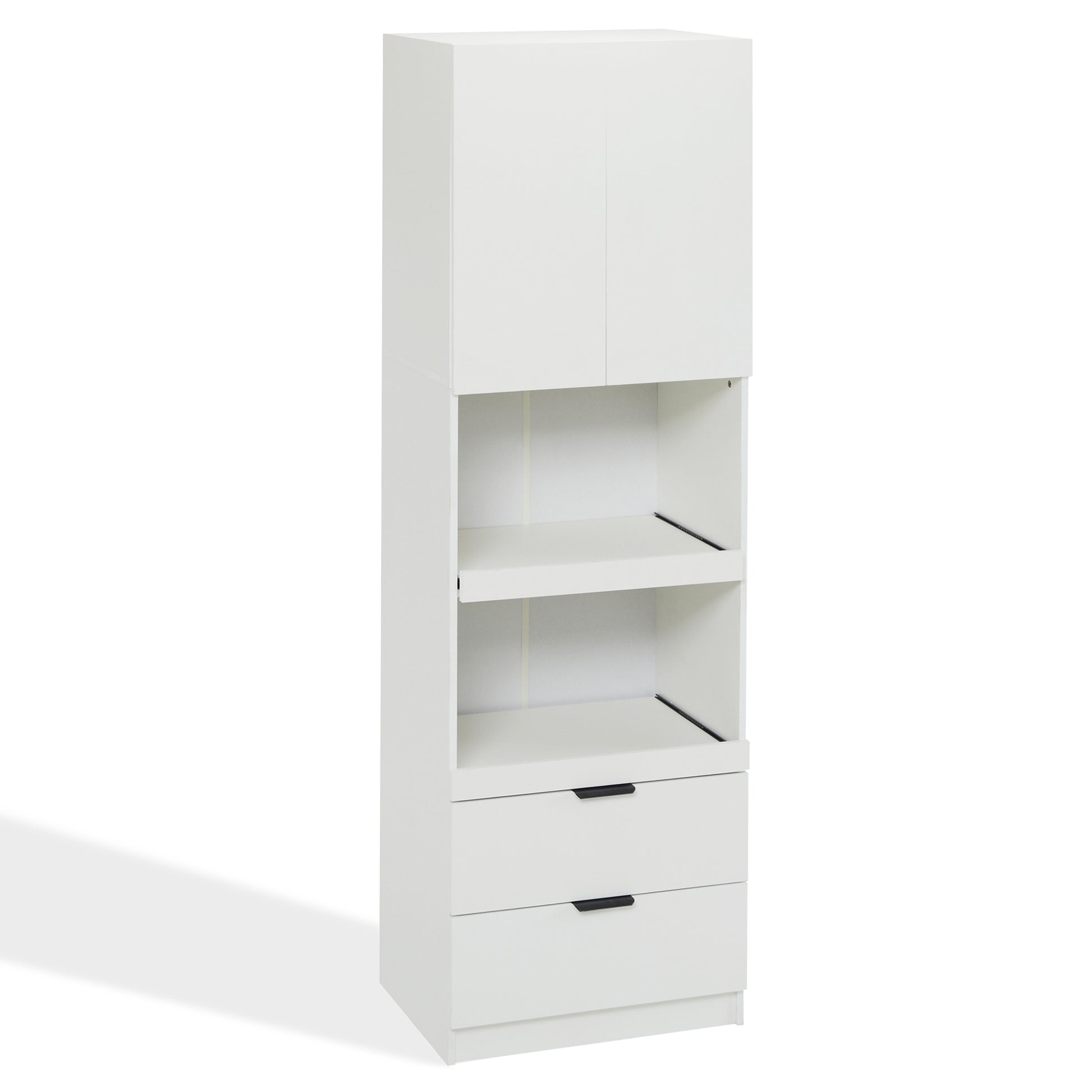 Tall Storage Cabinet 200cm High Doors Drawers Microwave Shelf - White