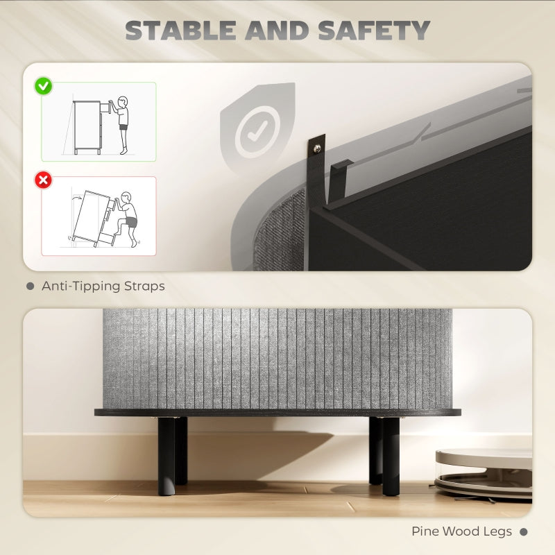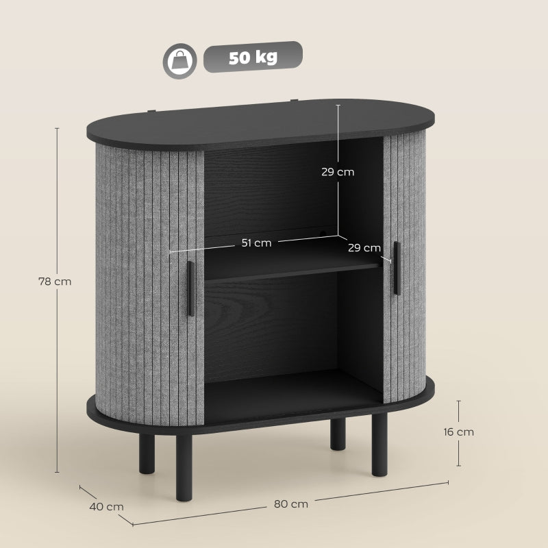 Tambour Sideboard Fluted Sliding Doors Kitchen Cupboard Storage Shelves Grey