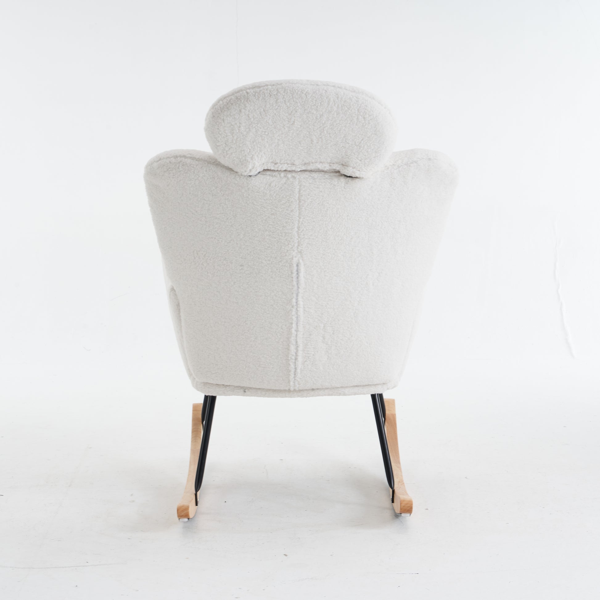 Teddy Fabric Rocking Chair, Tufted Upholstered with Headrest and Foldable Footrest, Ivory White