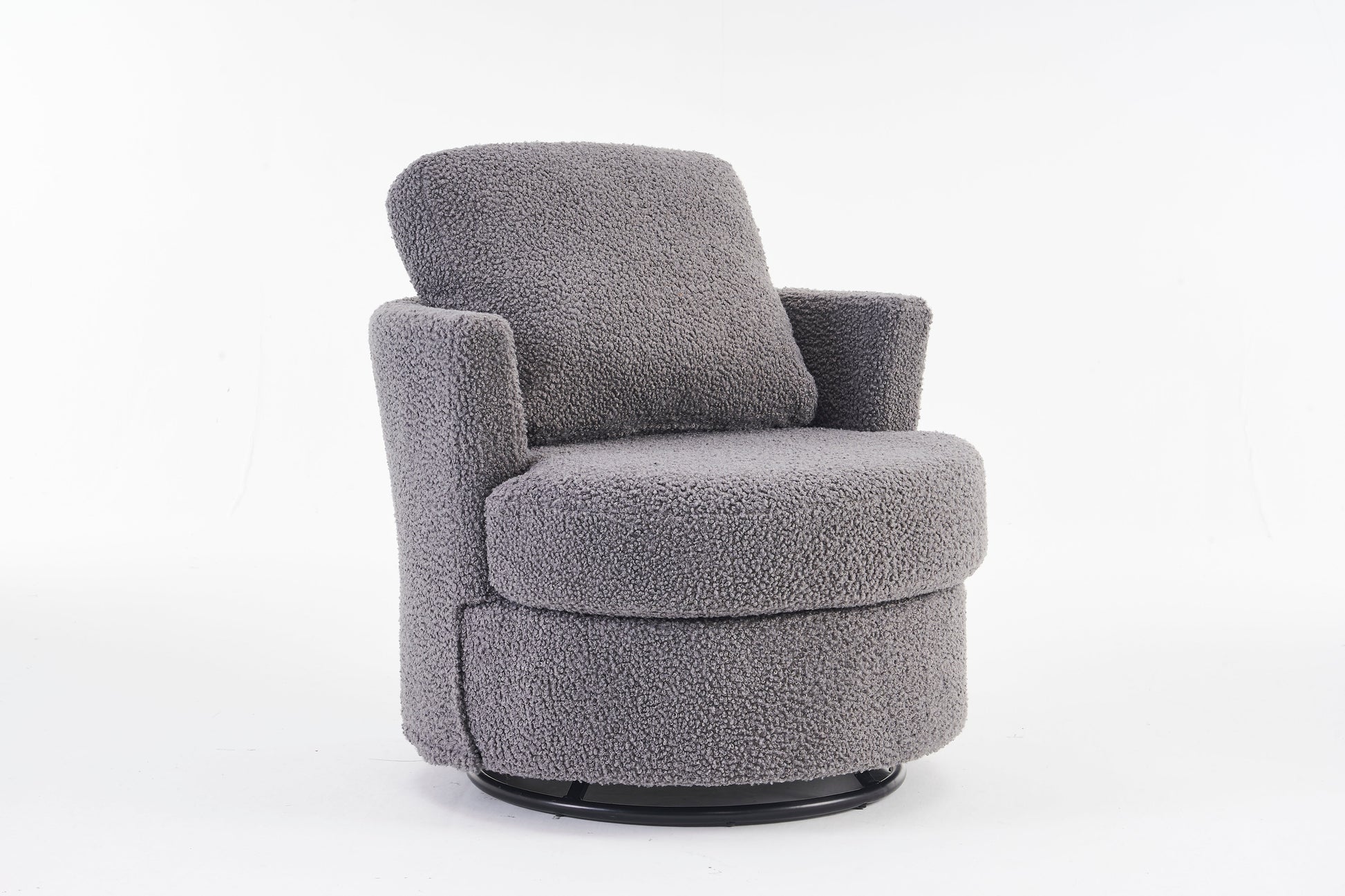 Teddy Swivel Armchair: Back Cushion Pillow, Thick Foam Pad, Medium Grey