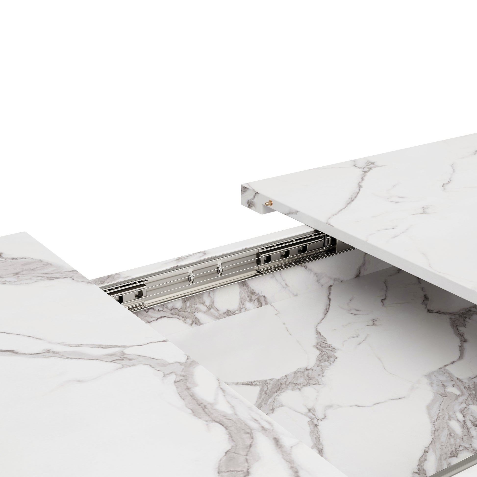 This dining table combines elegance and practicality. The tabletop, made of marbled MDF (with a discontinuous marble pattern), is not only beautiful but also durable. The unique design of the cross-shaped iron legs adds a modern touch and stability. The tabletop features a telescopic mechanism that extends from 120cm to 160cm as needed, making it easy to adapt to different space requirements and party sizes. Whether for everyday family meals or entertaining friends, this dining table is perfect for bringing comfort and style to your home.