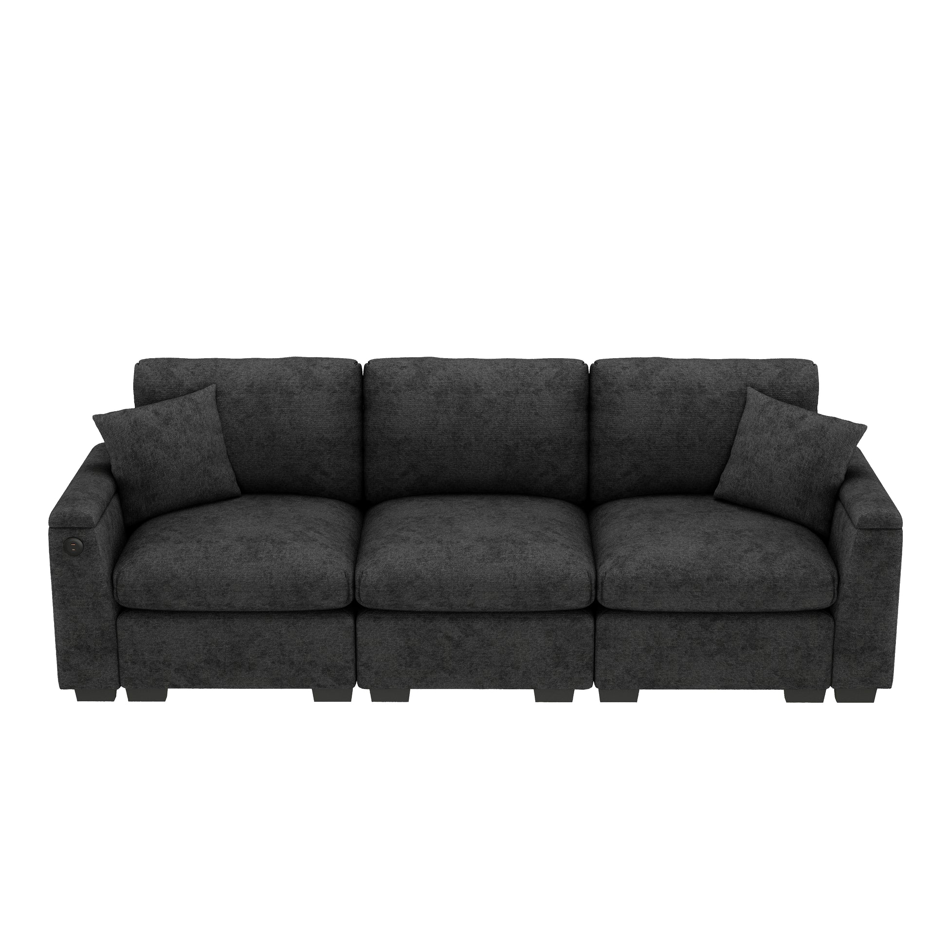 Three-Seater Sofa Multifunctional Folding Table USB Storage - Chenille