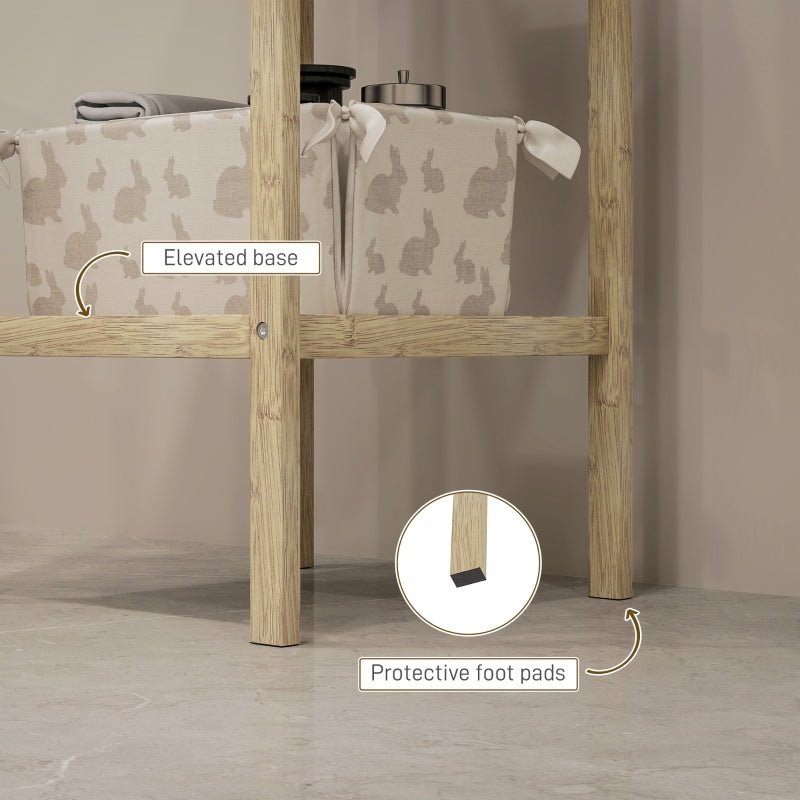 Constructed with a naturally beautiful and strong bamboo frame, this shelf unit is suitable for moisture-filled environments like bathrooms. It features a smooth and protective varnish finish.