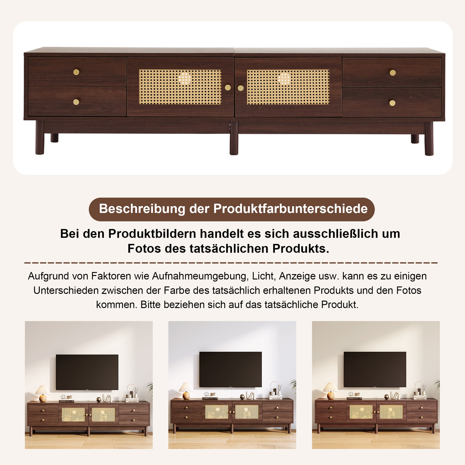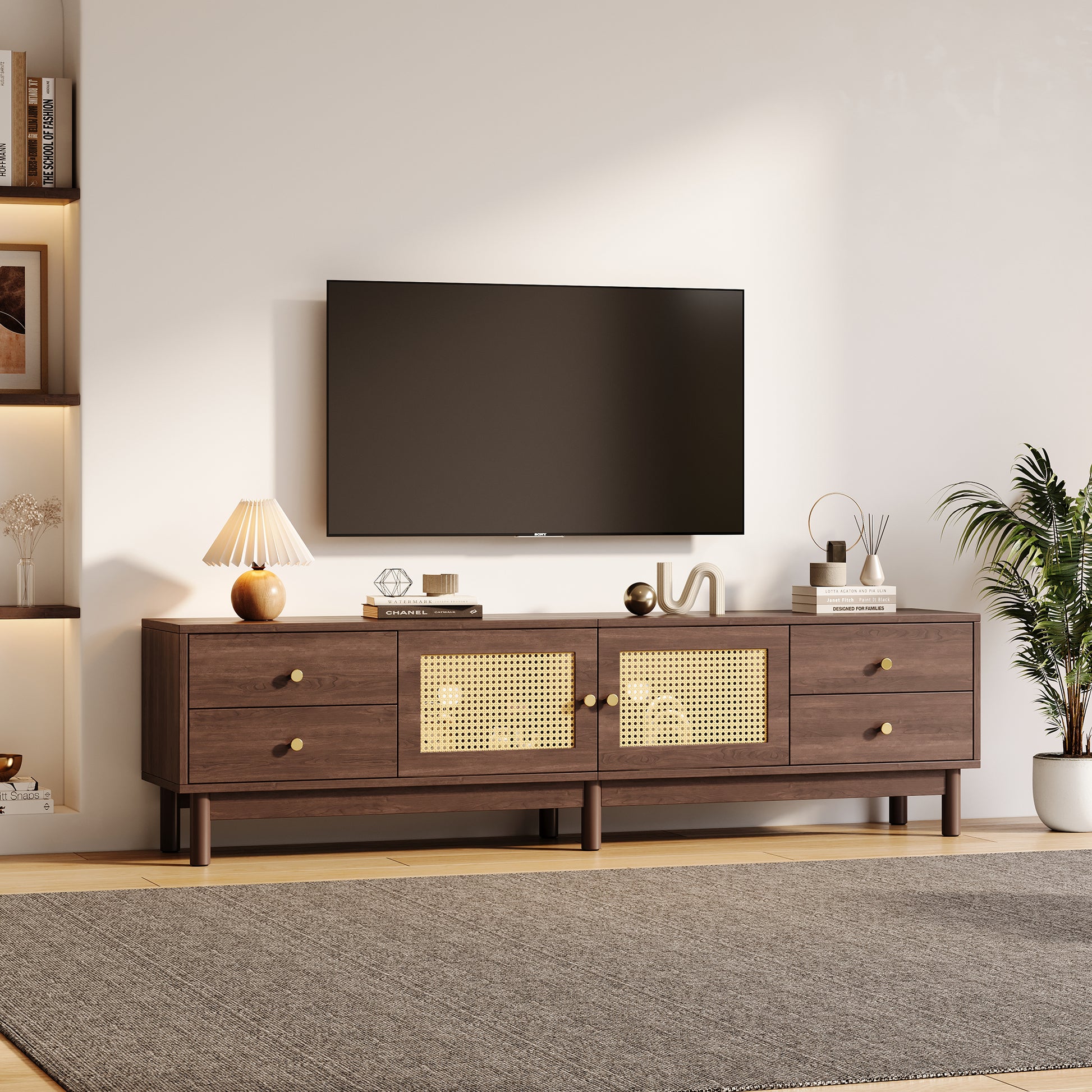TV Cabinet, 180cm with Rattan Doors, 4 Drawers, Cable Management, Dark Wood