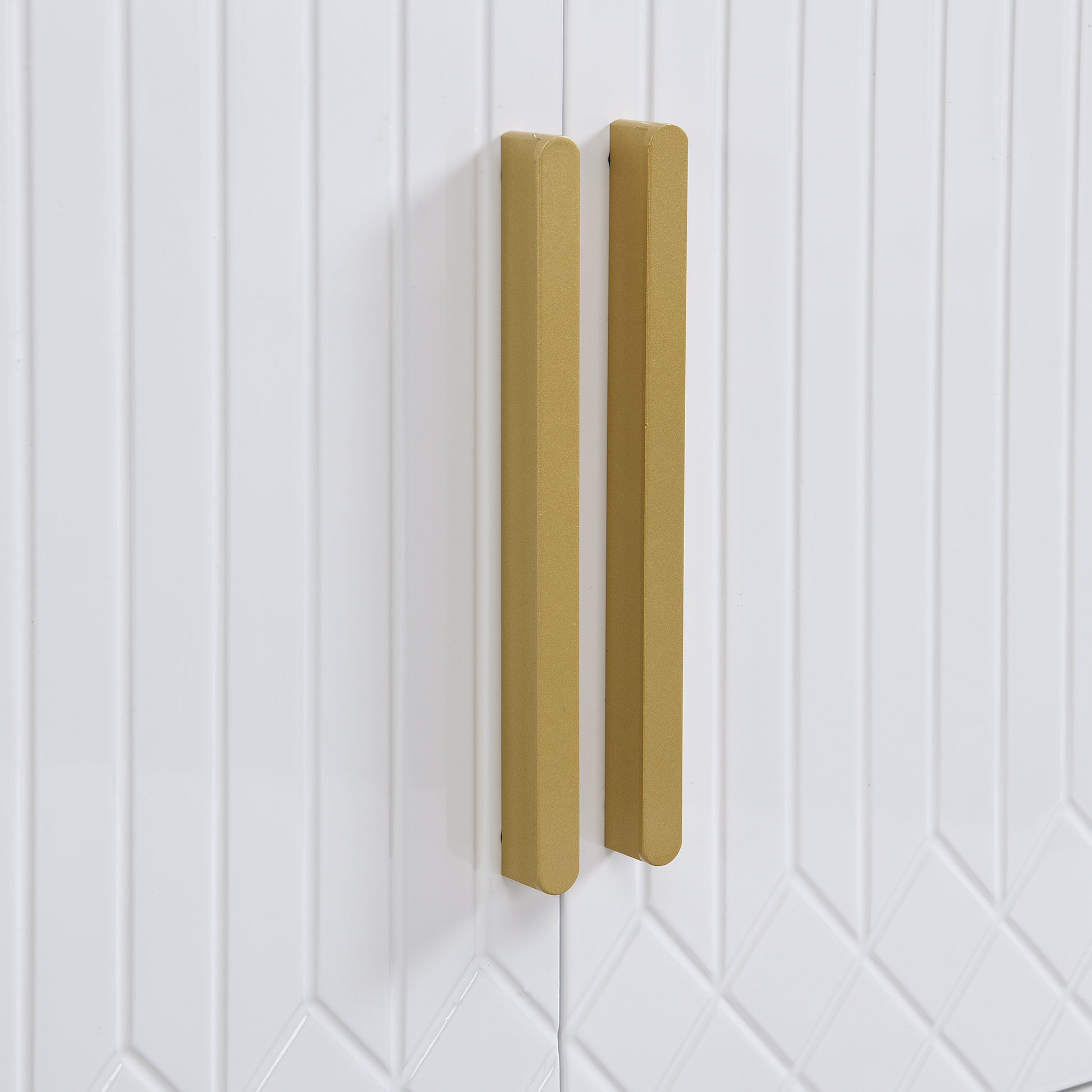 TV Cabinet, High-Gloss with Golden Handles & Engraved Door, Living Room Storage Solution