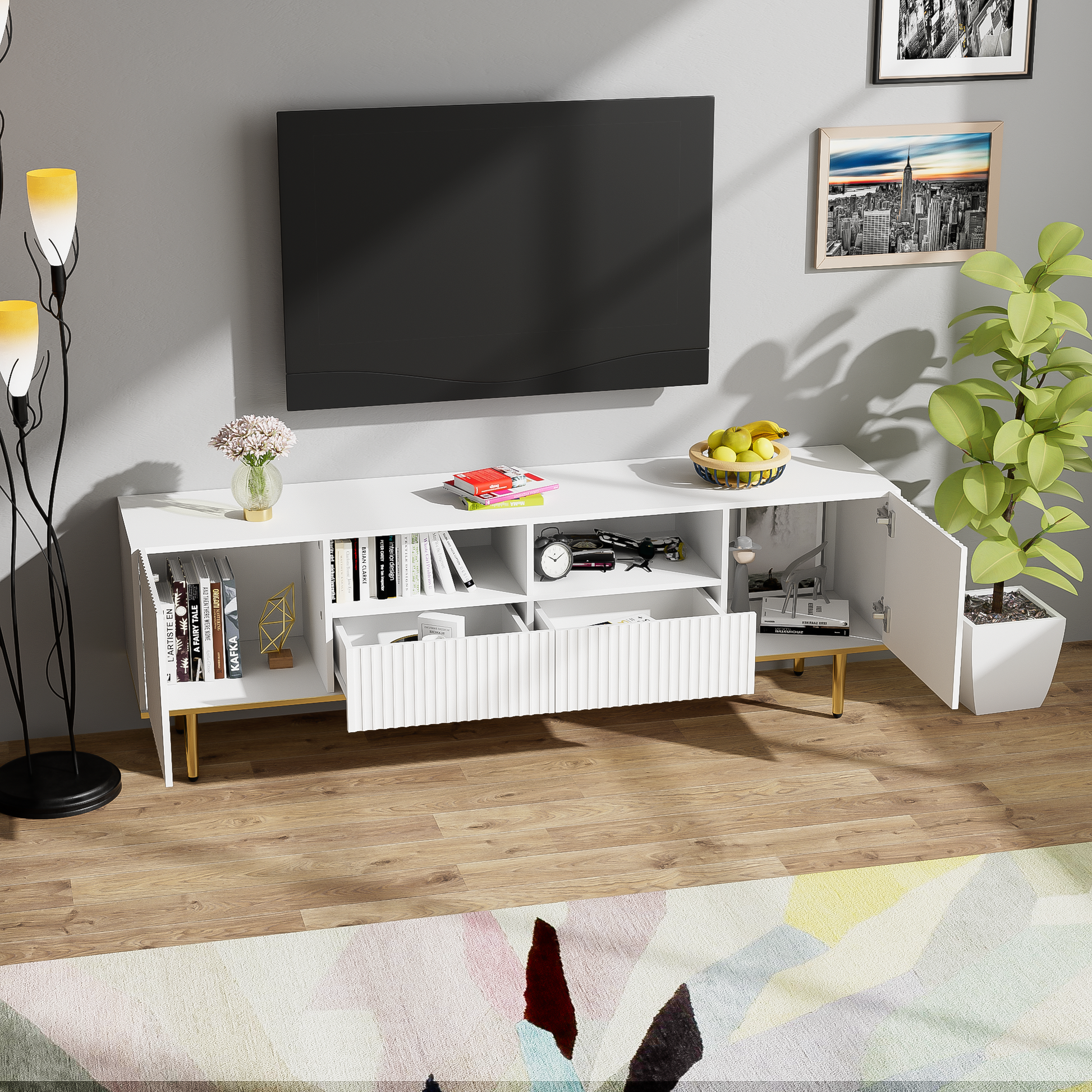 TV Cabinet, Modern with Gold Legs and Trim, Gold