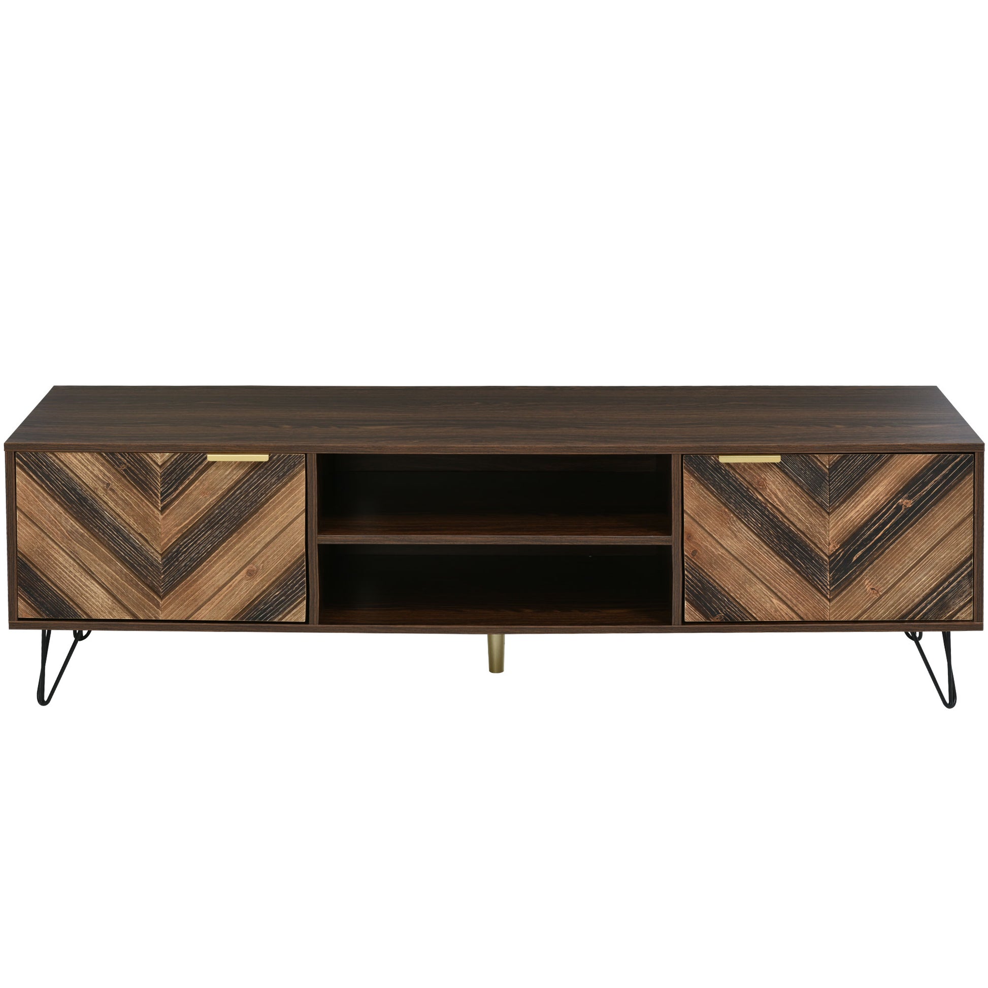 TV cabinet, two doors two compartments low panel, solid wood veneer with gold handles and iron feet