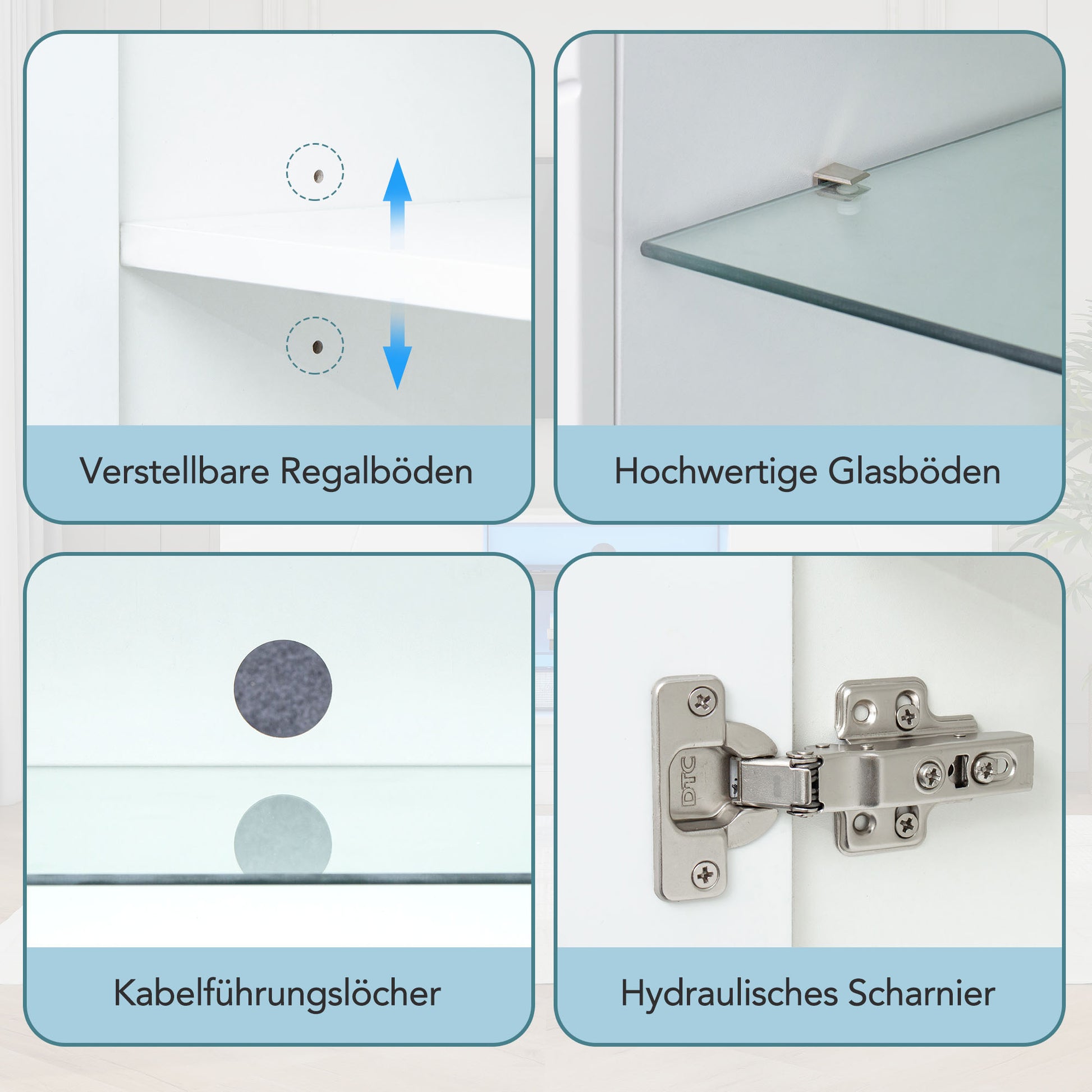* Adjustable Glass Shelf: Modern and adaptable to your needs.