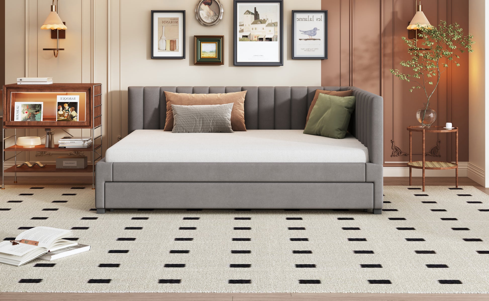 Upholstered Bed 140*200, Pull-Out Sofa Bed, Multifunctional, Velvet Gray