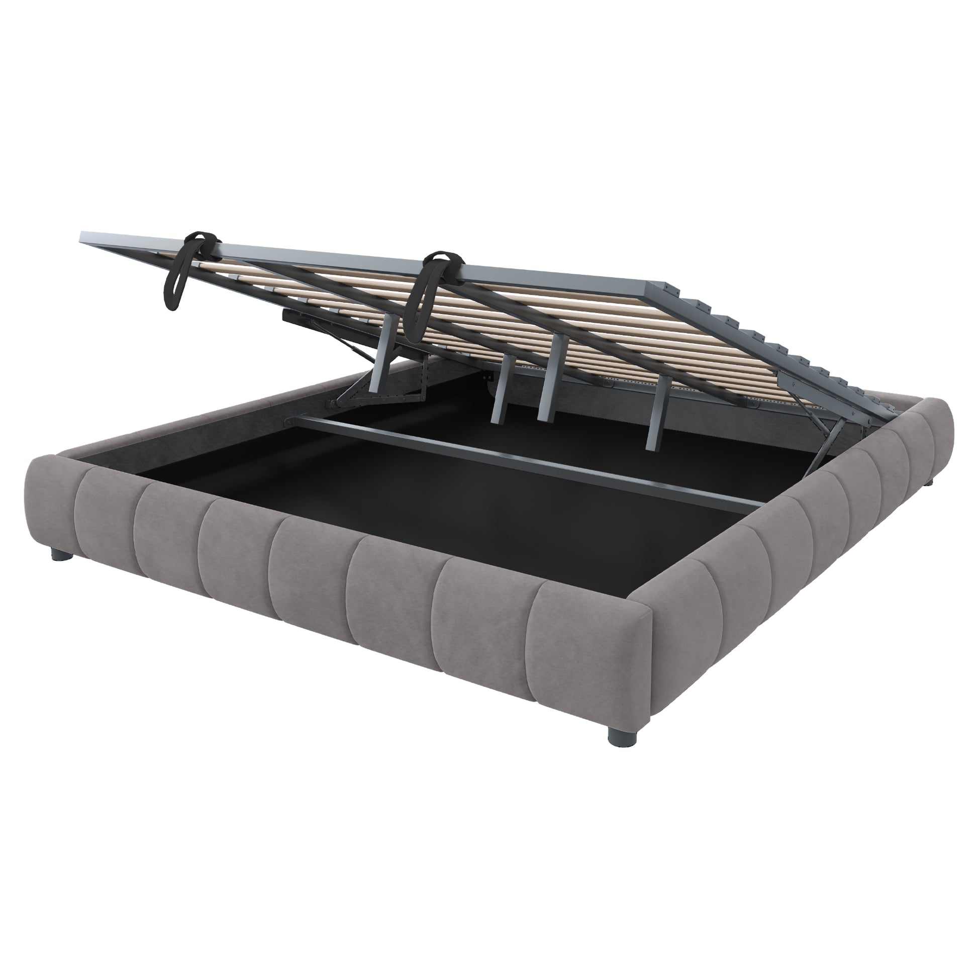 Upholstered Bed, 180x200cm LED Floating with Storage, Grey