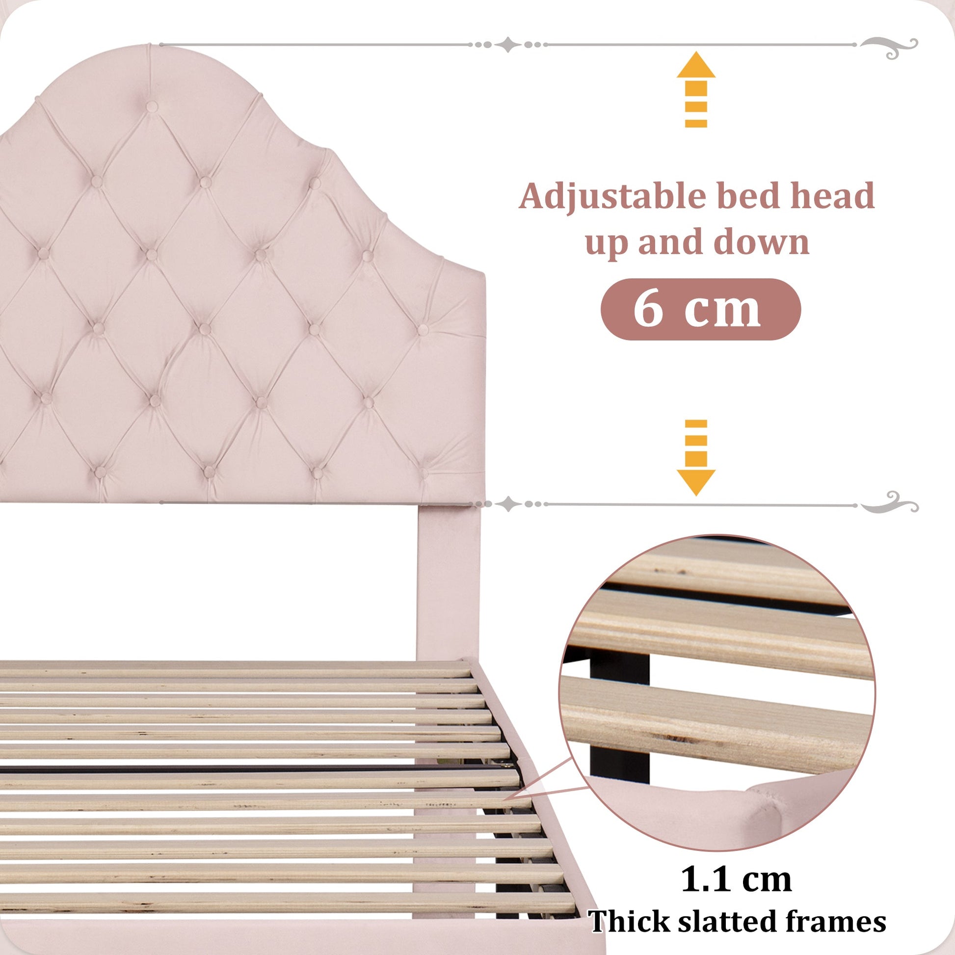 Upholstered Bed 90*190 with Height-Adjustable Headboard, Slatted Frame, Velvet Pink