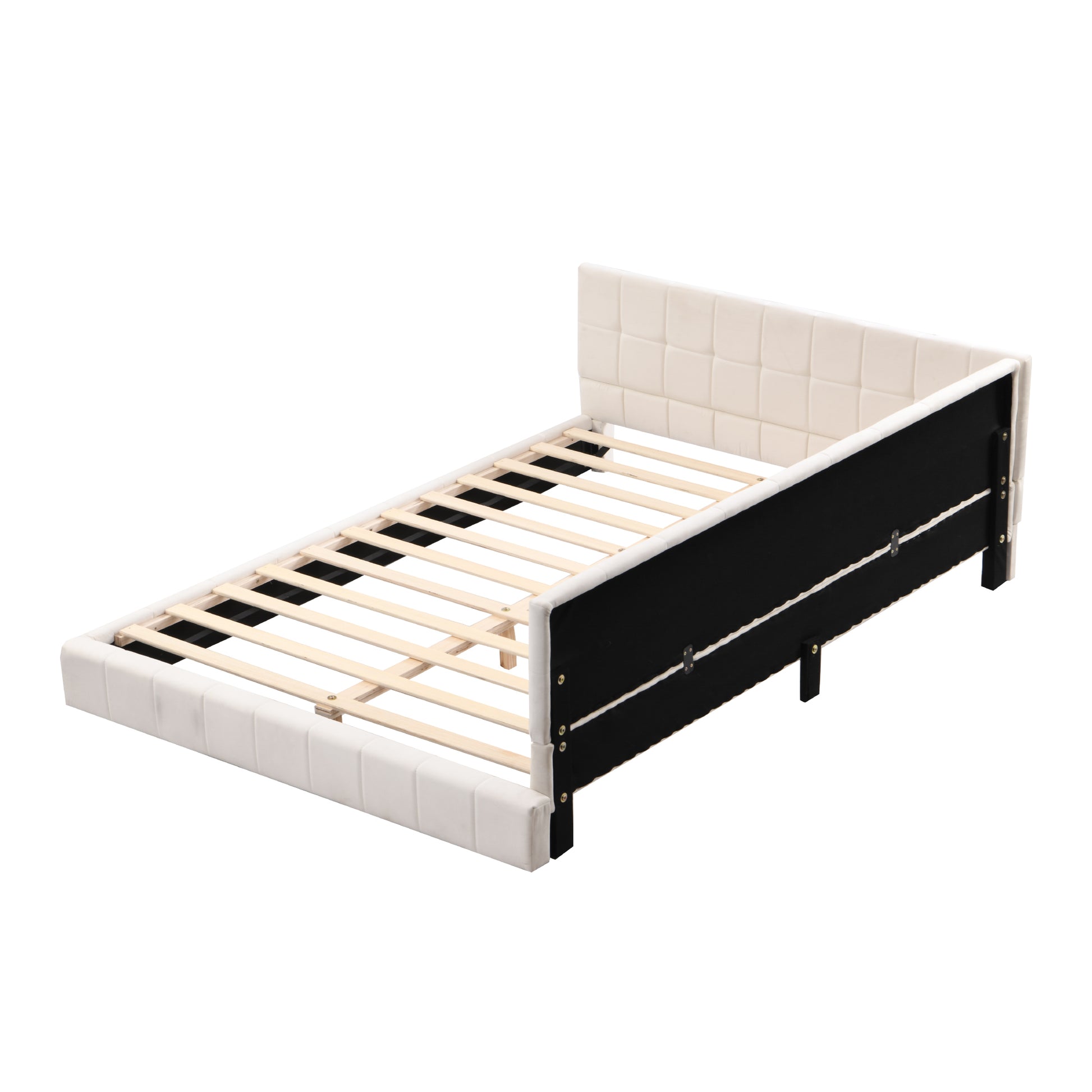 Upholstered Bed Sofa, 140x200 Multifunctional with Slatted Frame, Beige Velvet