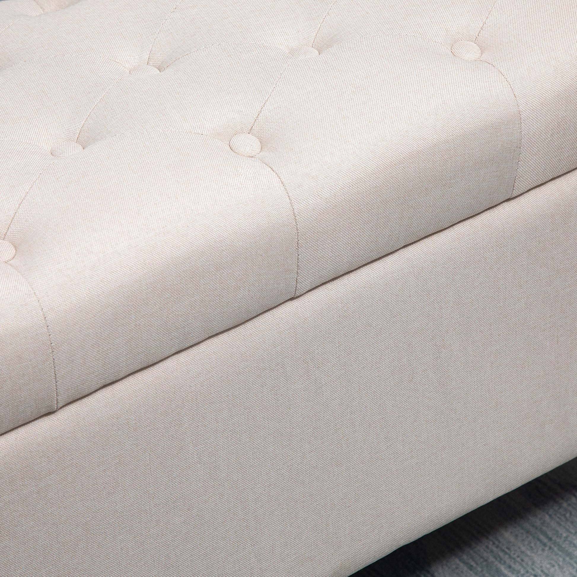 Upholstered bench with storage, chest bench, linen-like polyester cream white