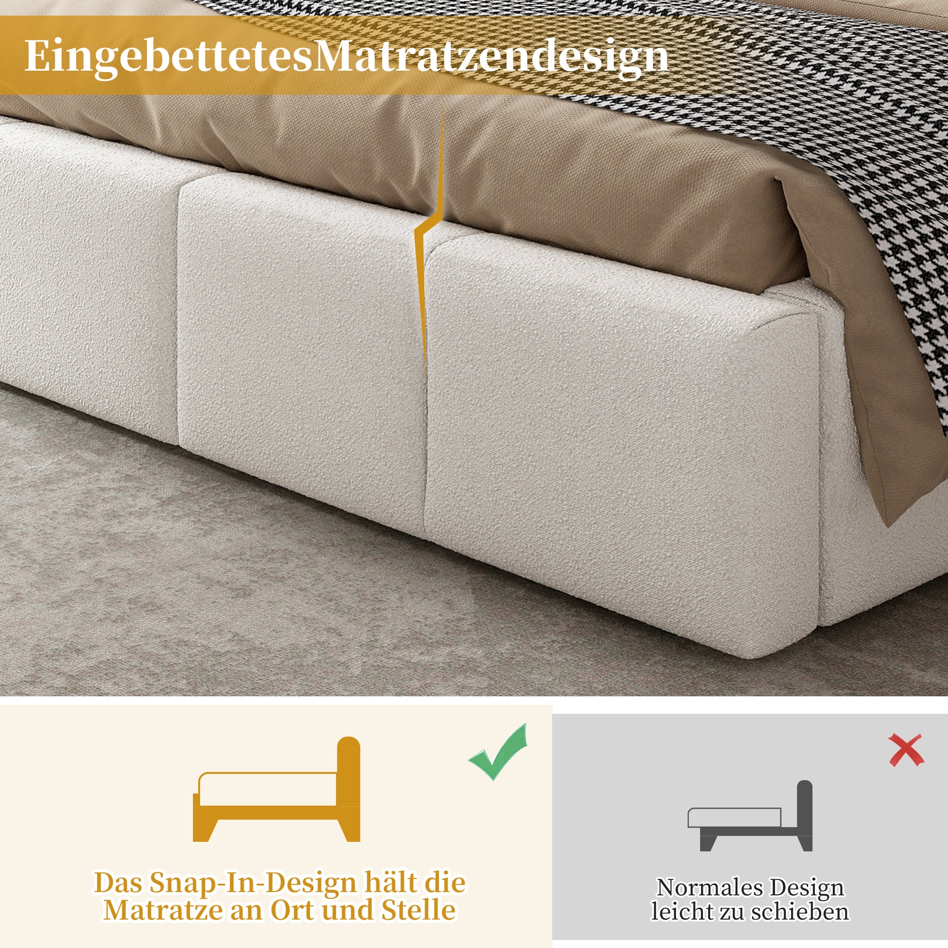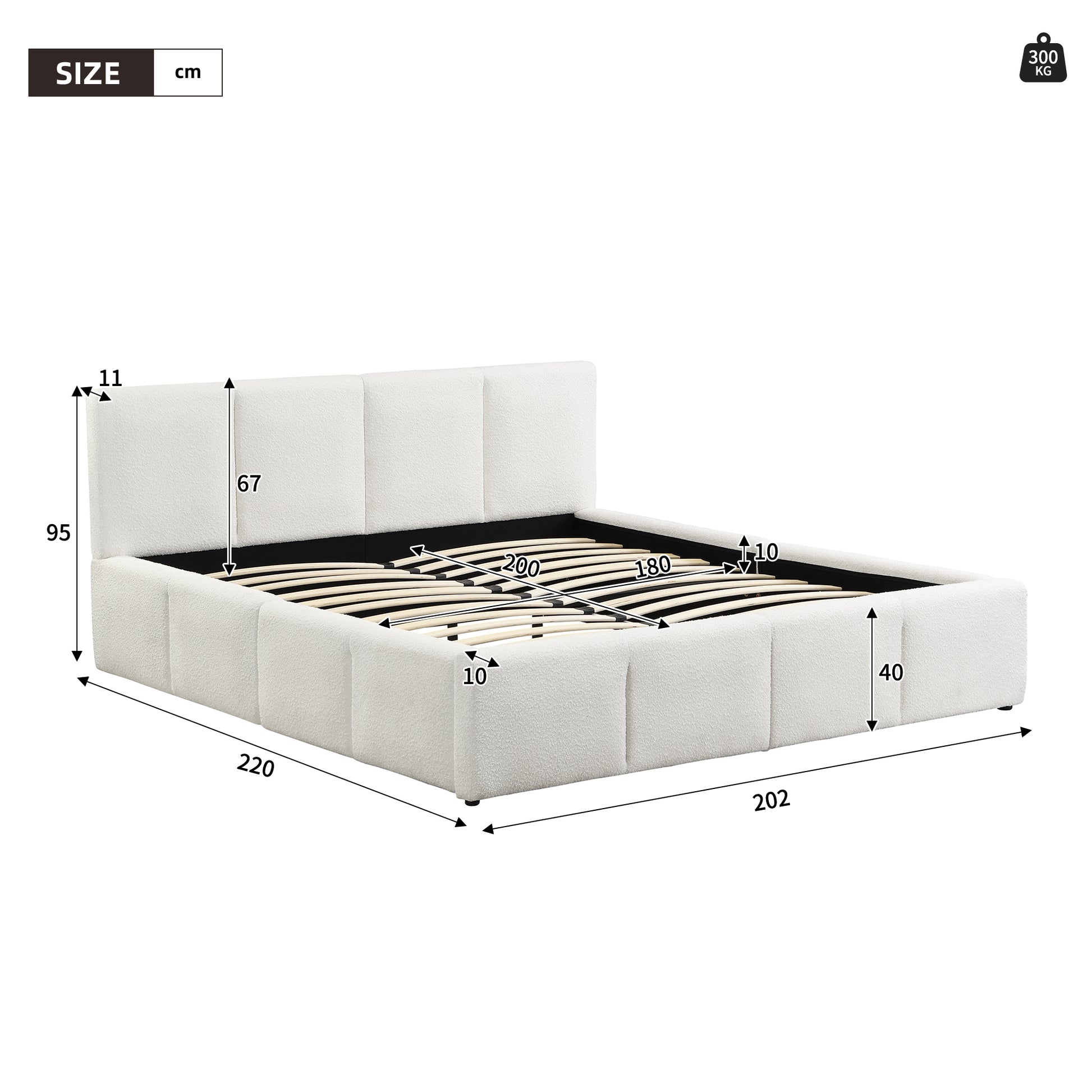Upholstered Double Bed, 180x200cm Slatted Base Headboard, Beige Bouclé