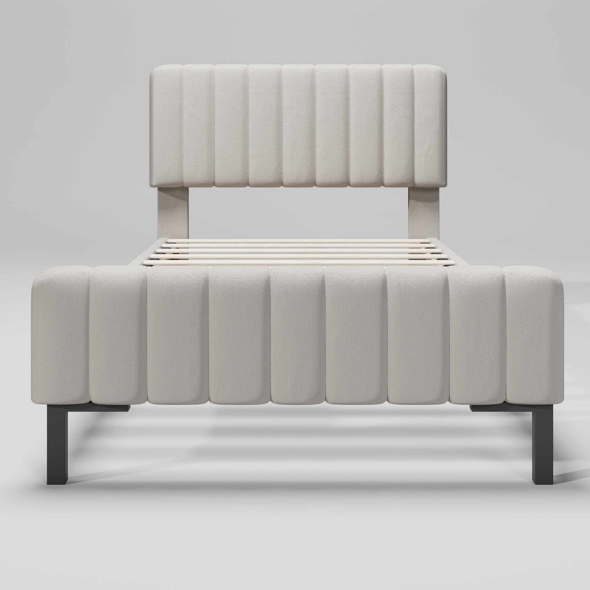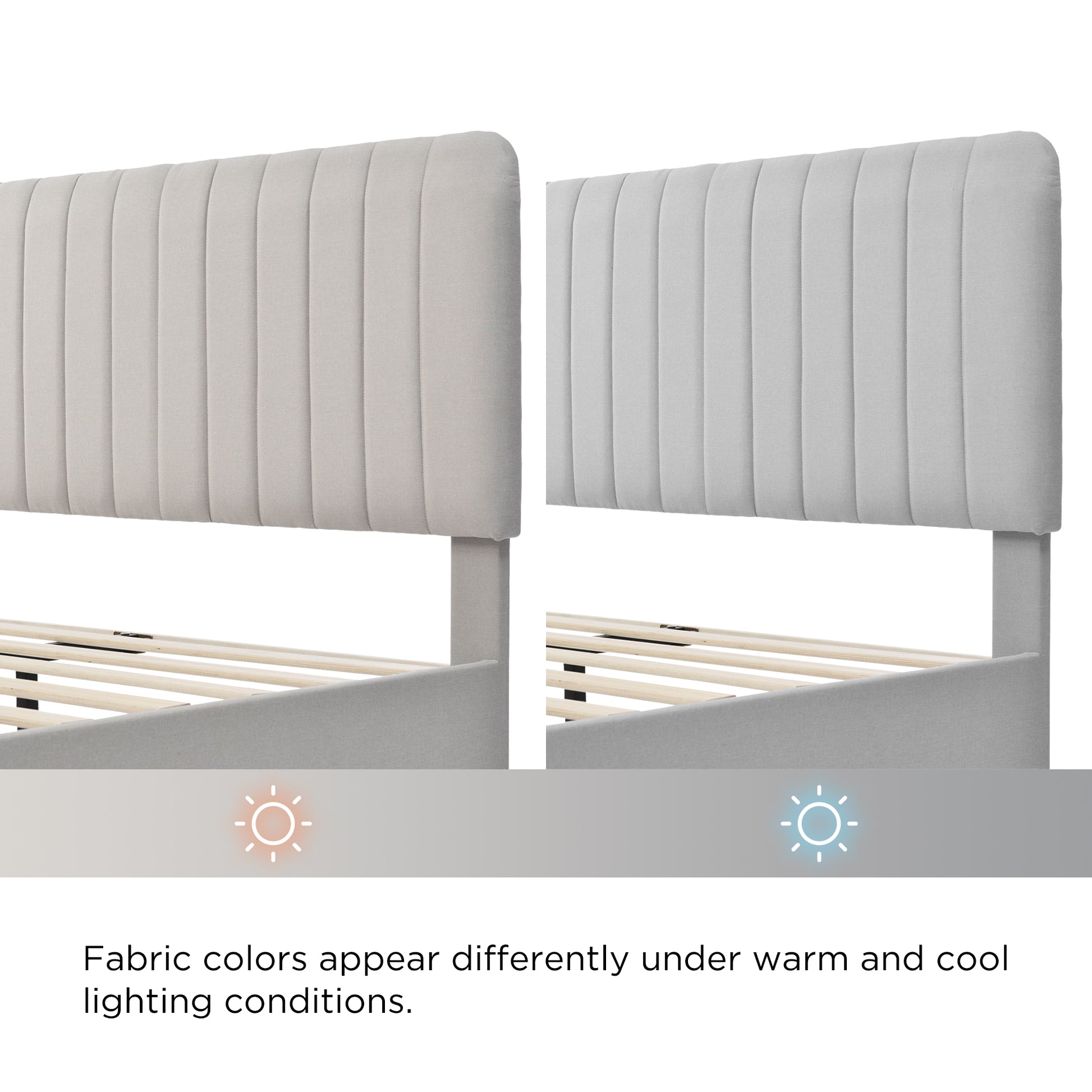 Upholstered single bed, 90 x 200 cm, adjustable headboard, grey-beige linen