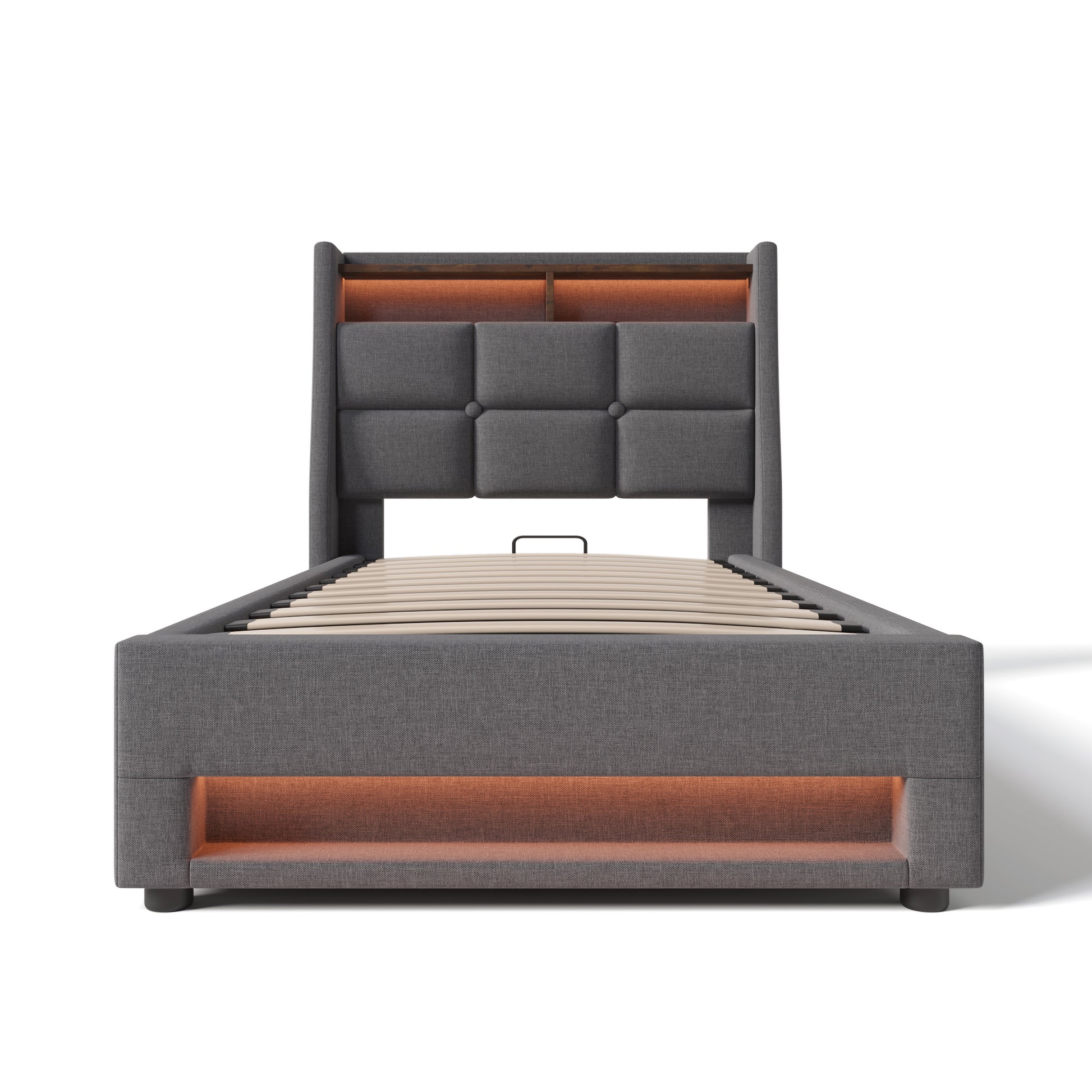 Upholstered Single Bed 90x200cm USB LED Metal Frame Linen