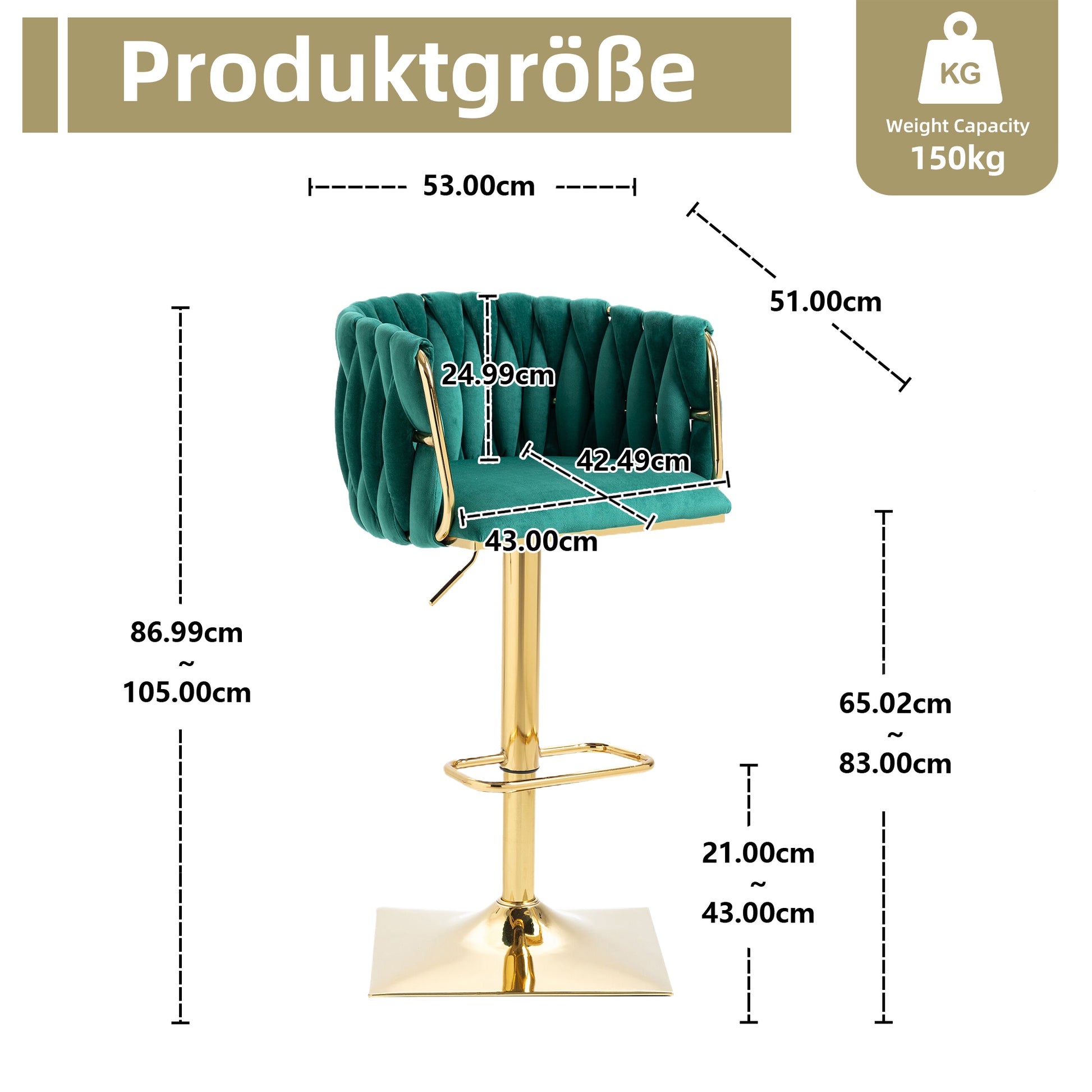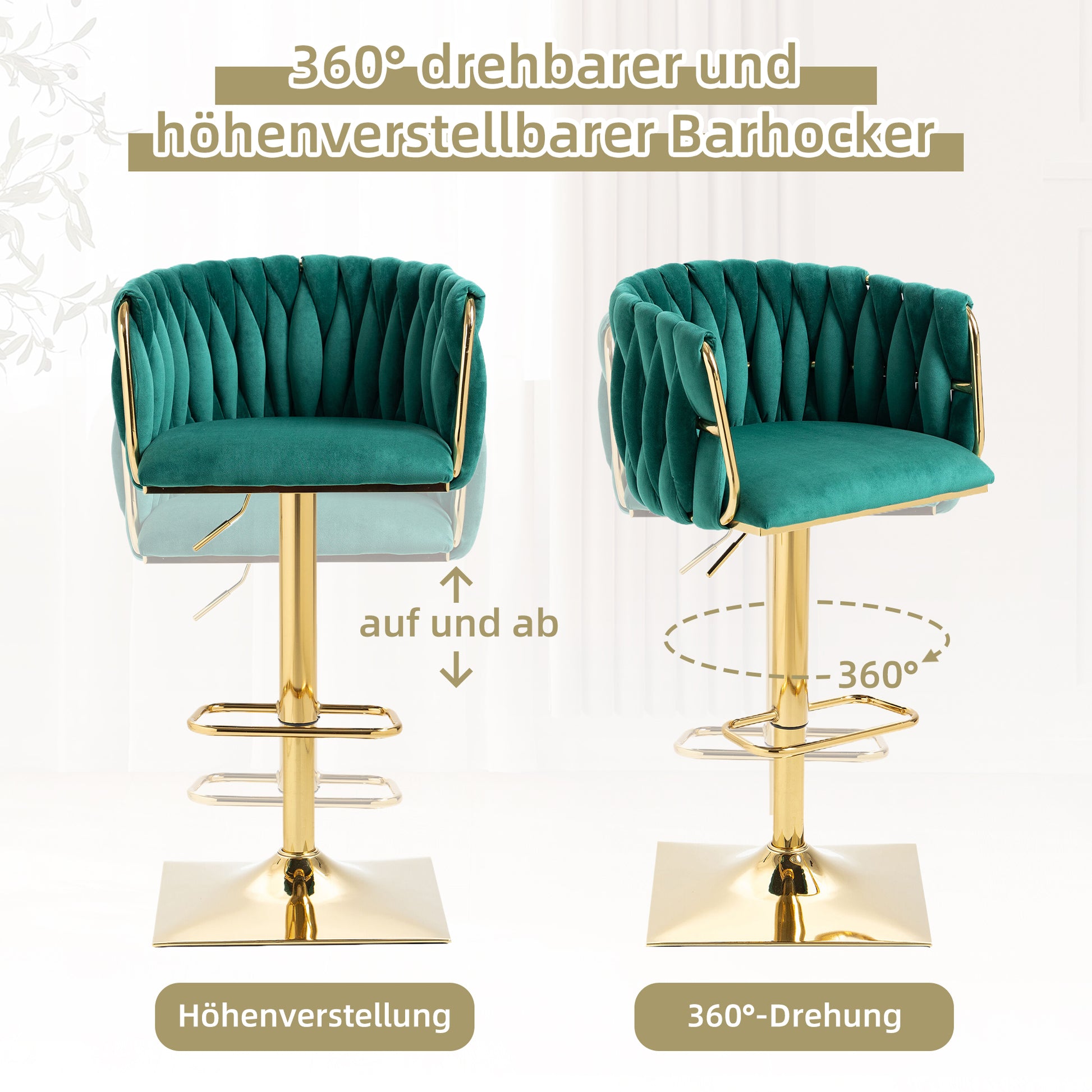 Velvet Bar Stools, Adjustable Swivel with Footrest, Emerald (Set of 2)