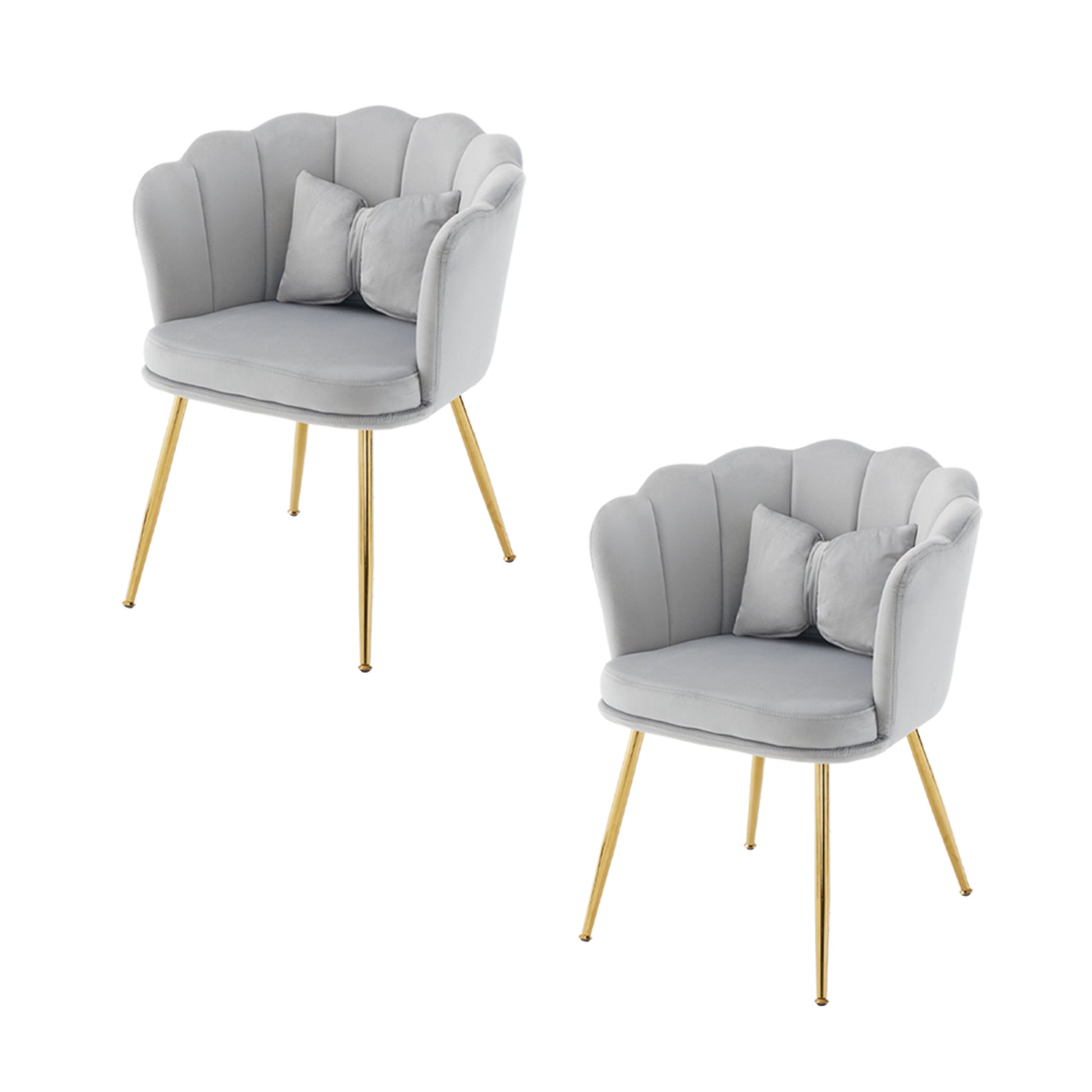 Velvet Chairs, Set of 2 Modern Upholstered with Petal Backs & Butterfly Cushions, Gold Metal Legs