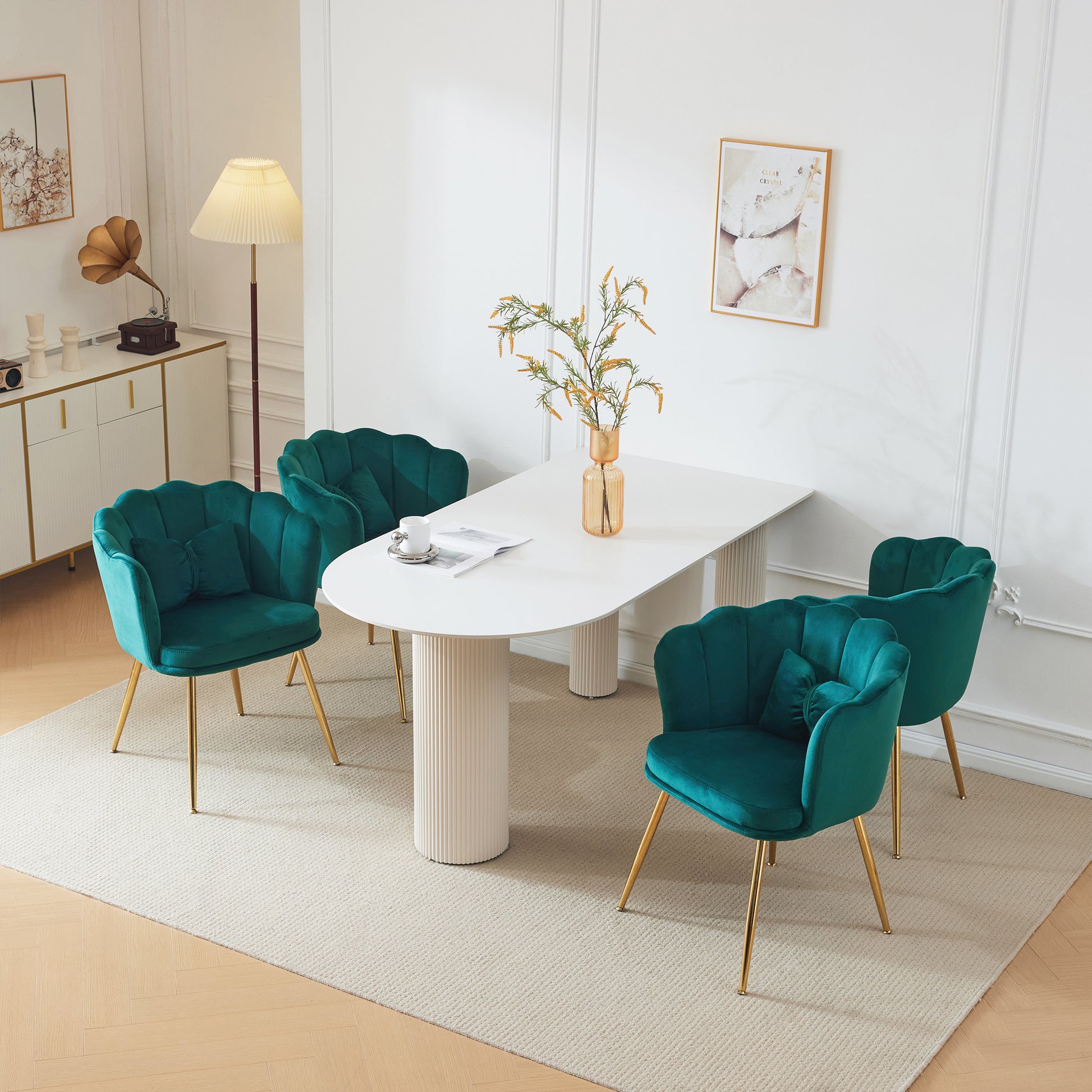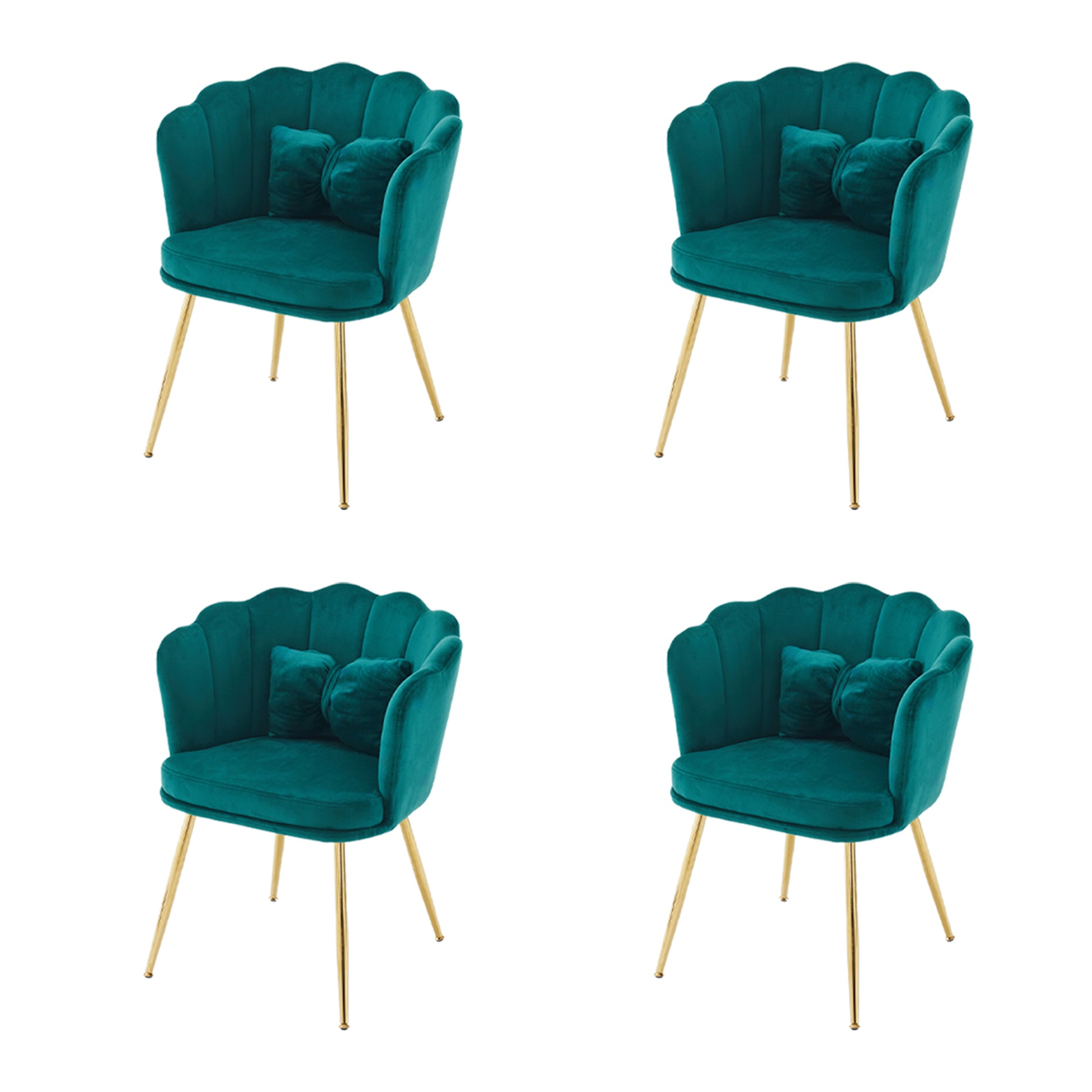 Velvet Chairs, Set of 4 Modern Upholstered with Petal Backs, Gold Metal Legs