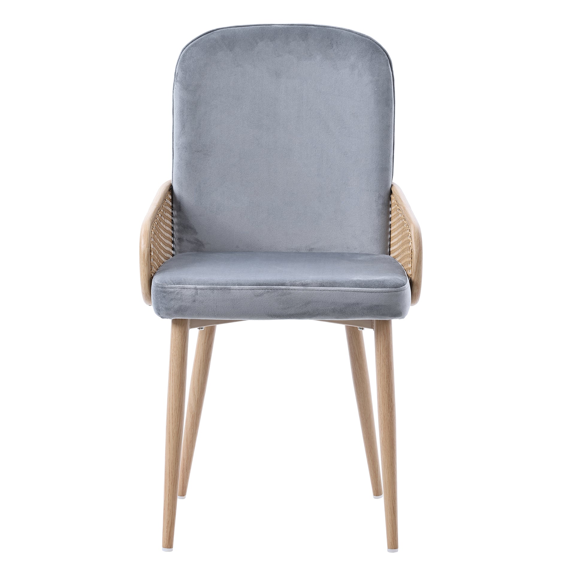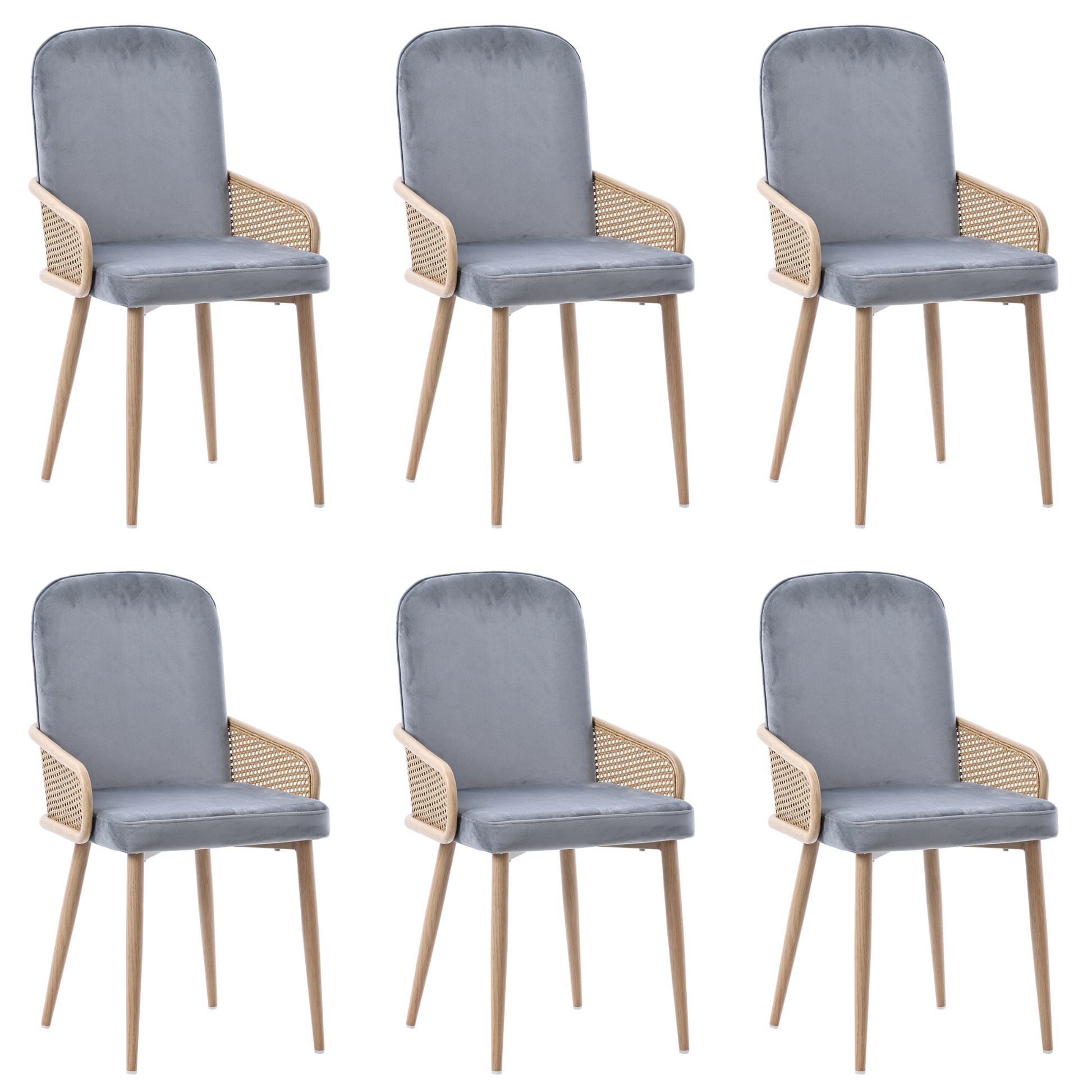 Velvet Dining Chair Set of 6 with Rattan Design and Metal Legs, Grey