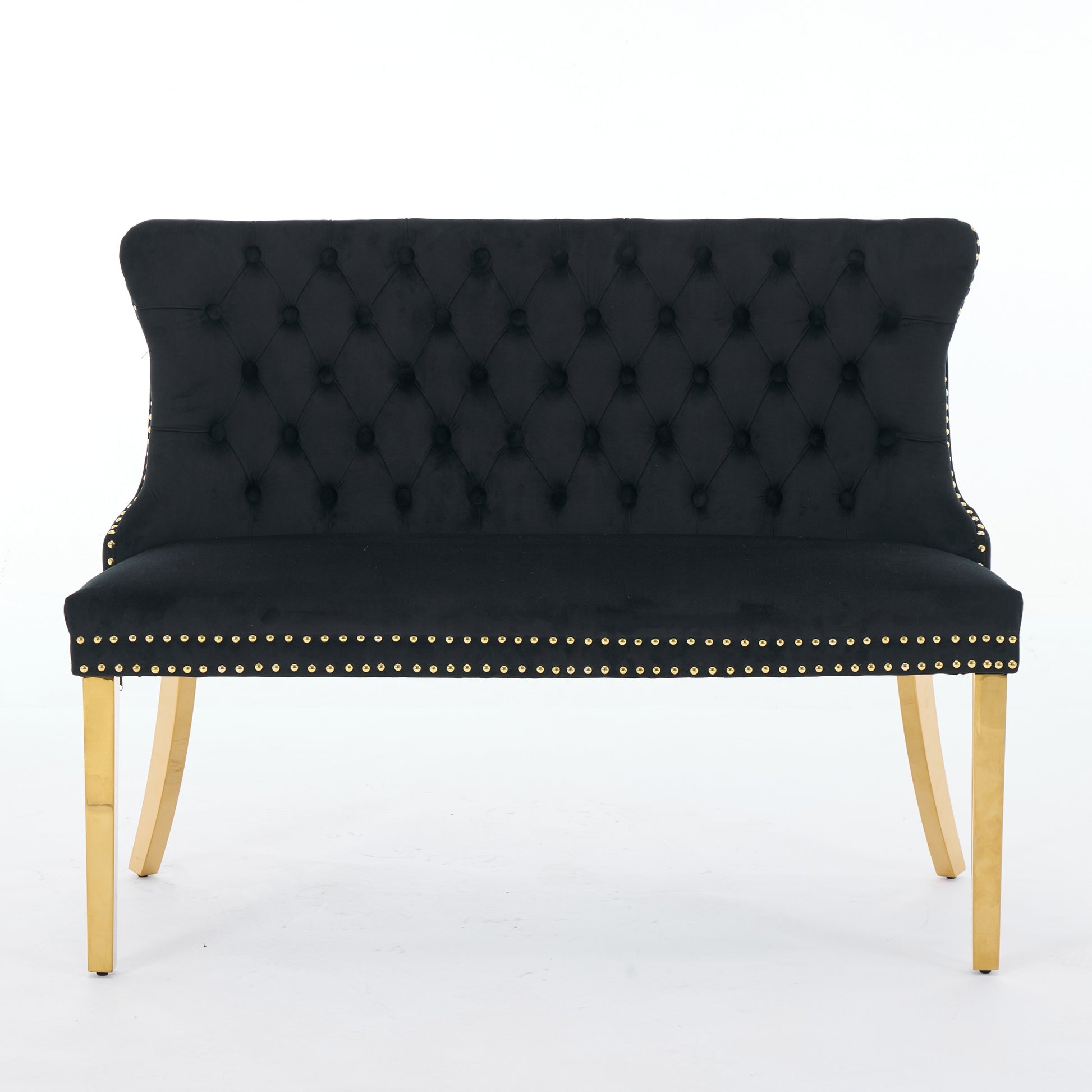 Velvet Dining Loveseat Bench, 2-Seat Tufted Wing Back Gold-Plated Steel Legs, Black Velvet