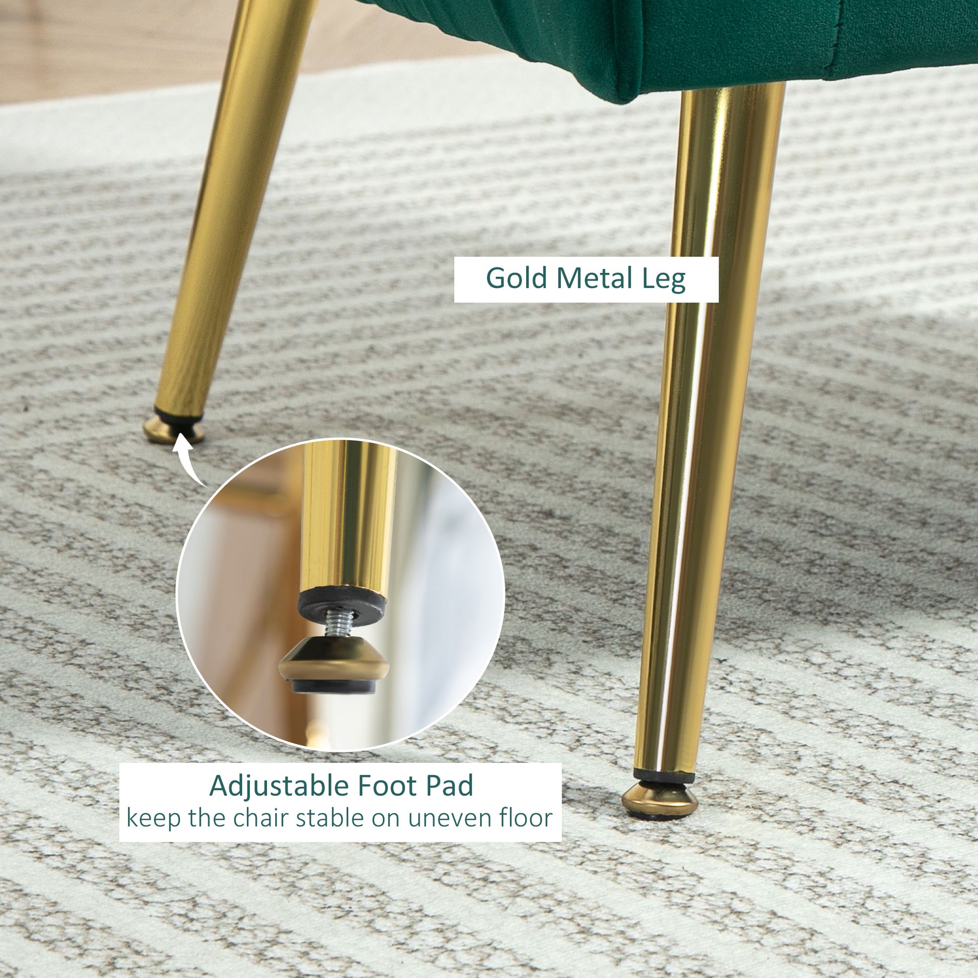 Metal legs: Full support for this small armchair as you sit. Adjustable foot pads keep the balance.