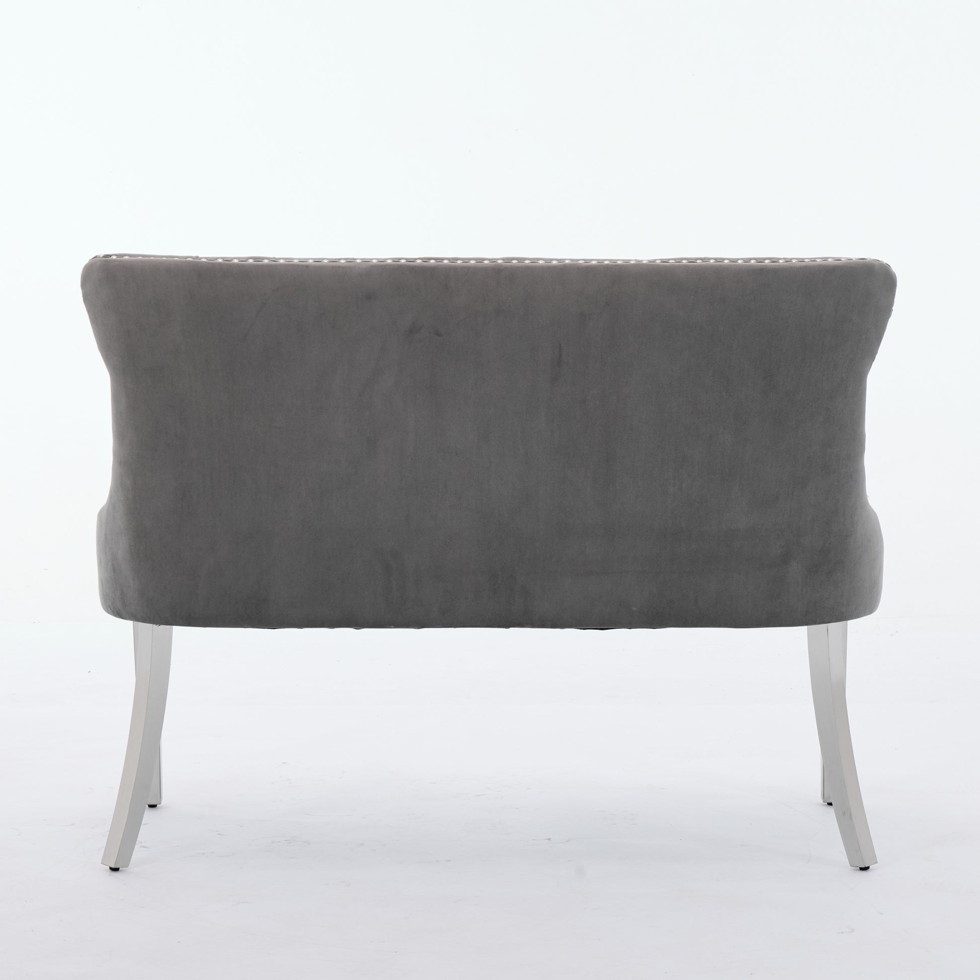 Velvet Loveseat Bench, 2-Seat Tufted Wing Back Mid Century Modern, Gray