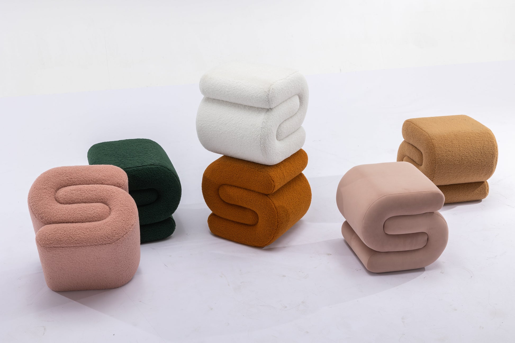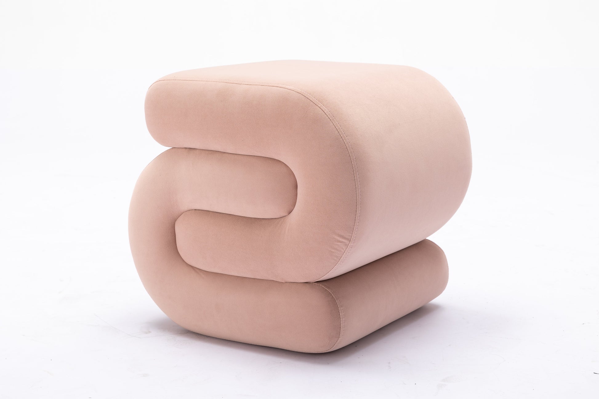 Velvet Ottoman Fabric S-shape Stool Wavy Pouf Pink