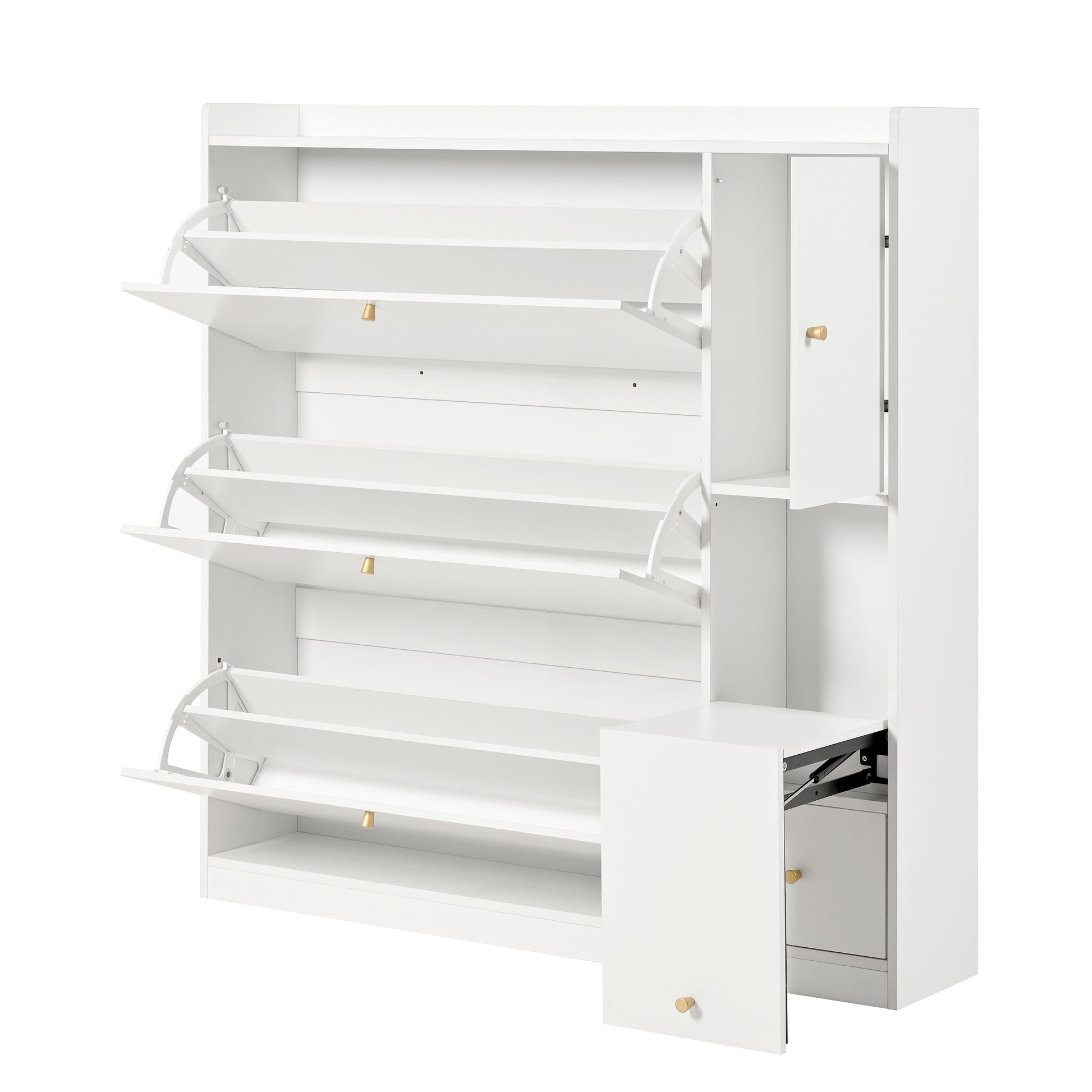 Versatile Tilting Shoe Cabinet with 3 Folding Drawers, Entryway Organizer, White