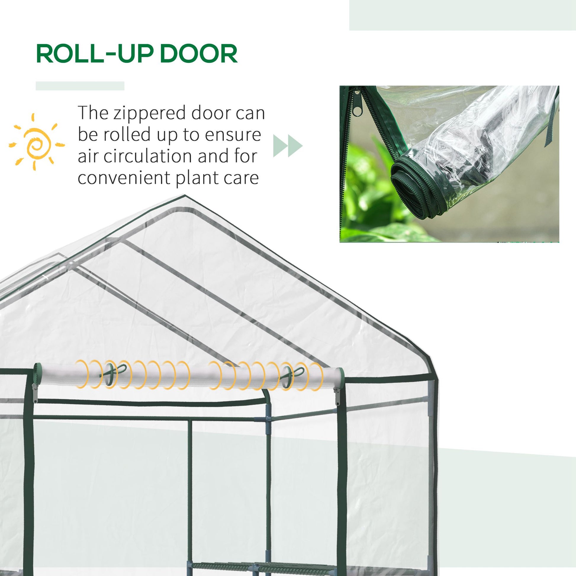 Easy access: The plastic greenhouse comes with a large roll-up door, allowing you to enter to take care of plants, or carry things in and out.