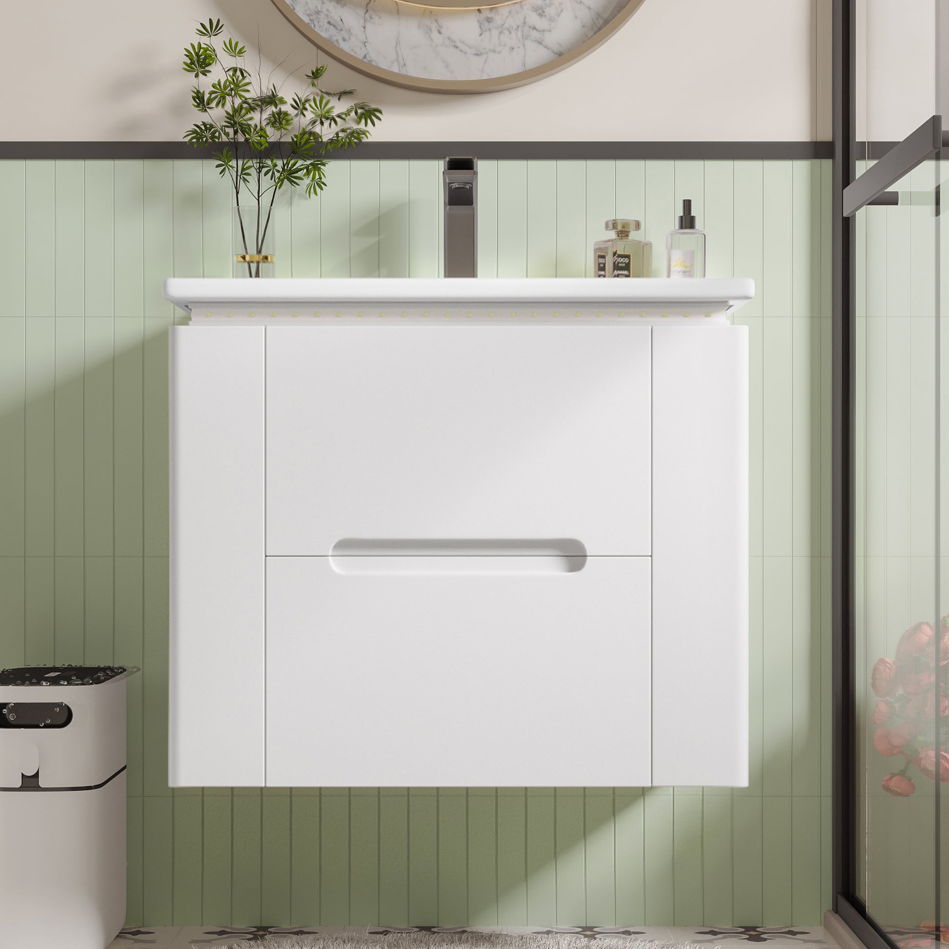 A key feature is the integrated LED radar sensor light, which illuminates when someone enters and turns off when they leave. This provides perfect lighting at night, enhances safety during every use, and adds a touch of modern convenience. Choose this bathroom cabinet to experience a new level of comfort and style.