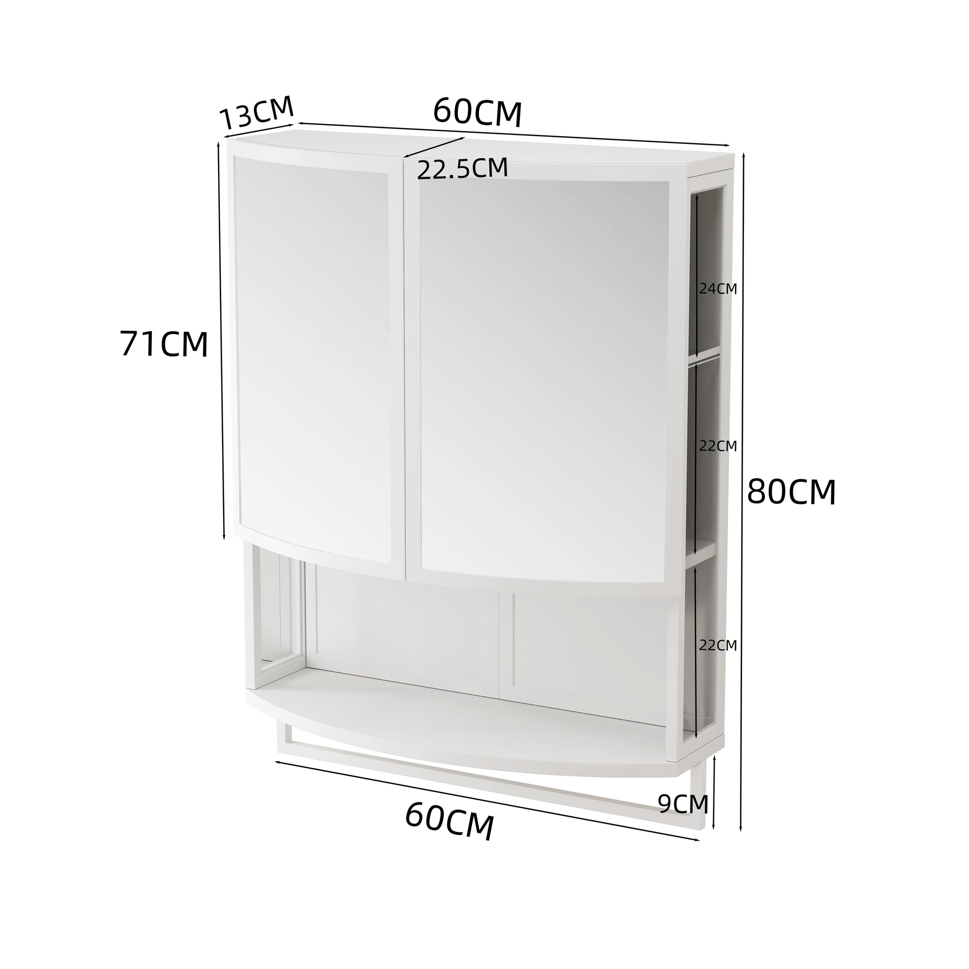 Wardrobe 60CM Modern Arched Double-Door Mirror Storage, White
