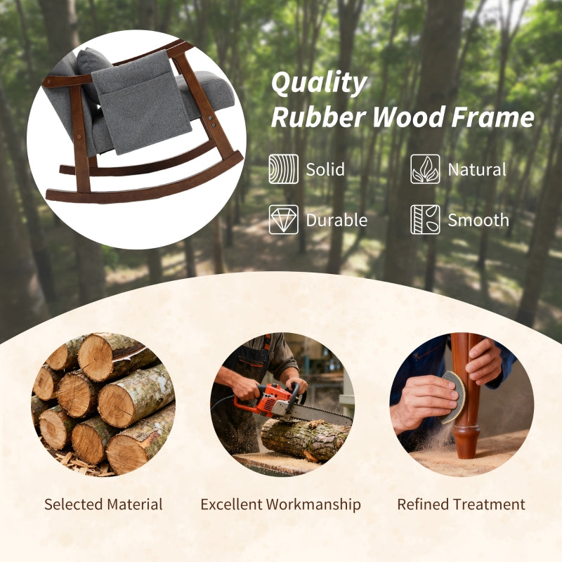 Wood Frame Rocking Accent Chair, 35° Rocking Base with Side Pocket, Grey
