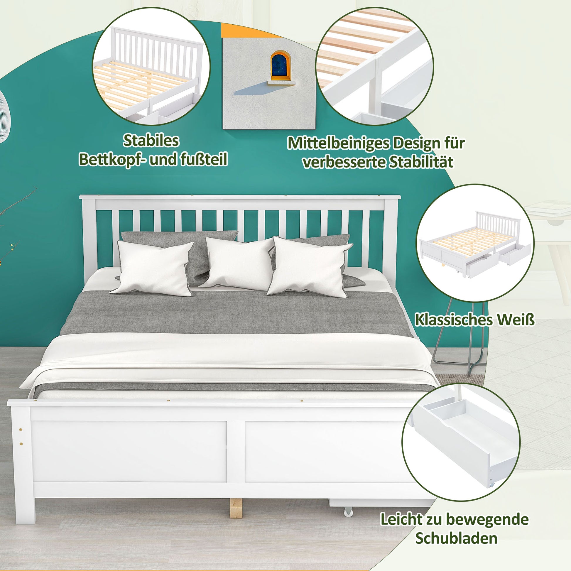 Wooden Bed, Double/Youth/Adult, Storage Drawers, Pinewood, White