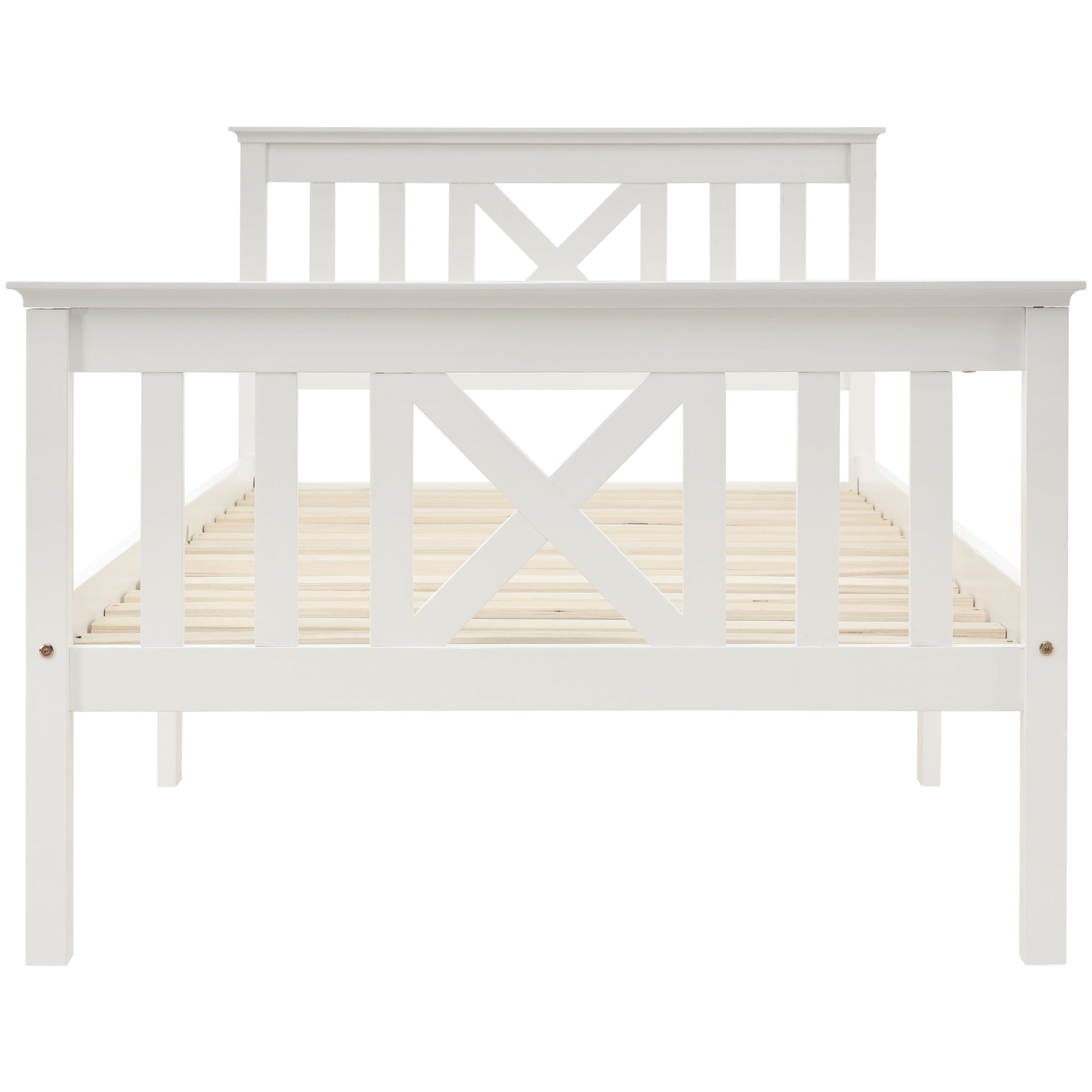 Wooden Bed Single, Bed Frame with Slatted Frame and Headboard, 90 x 200 cm, Solid Pine White