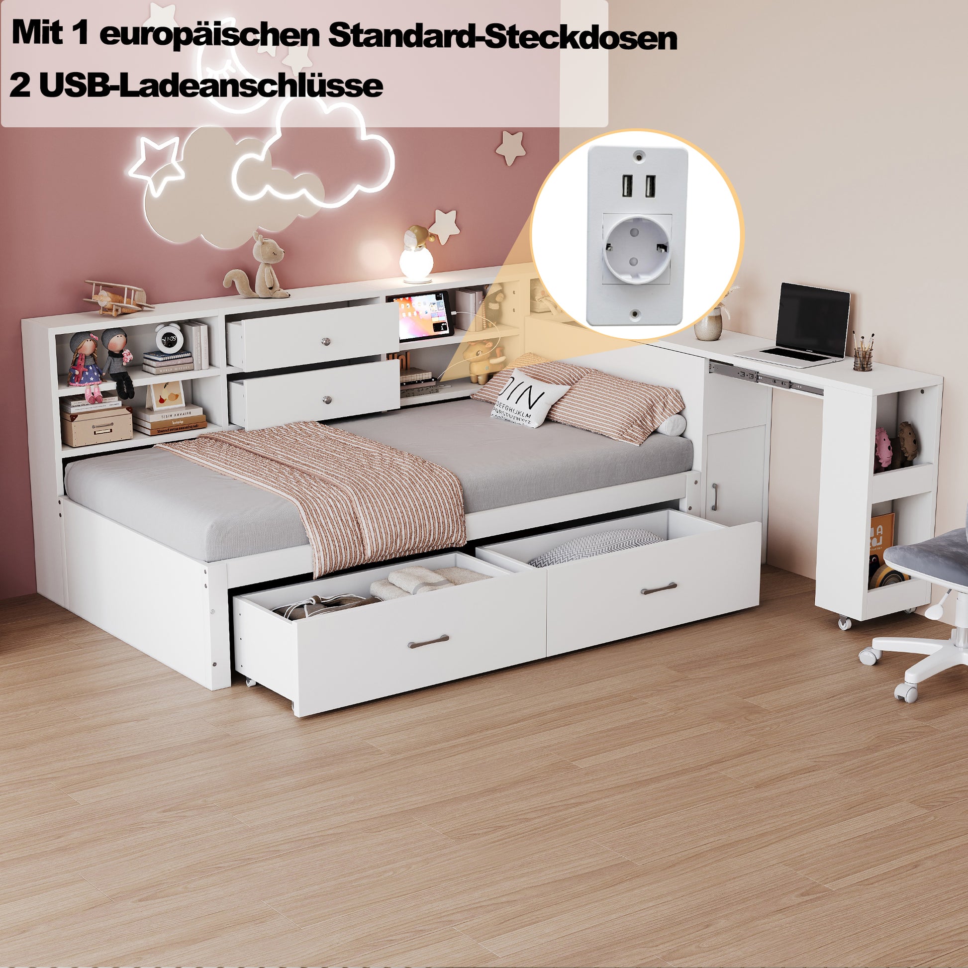 Wooden Sofa Bed 90x200cm Multifunctional Storage Pull-Out Desk, White