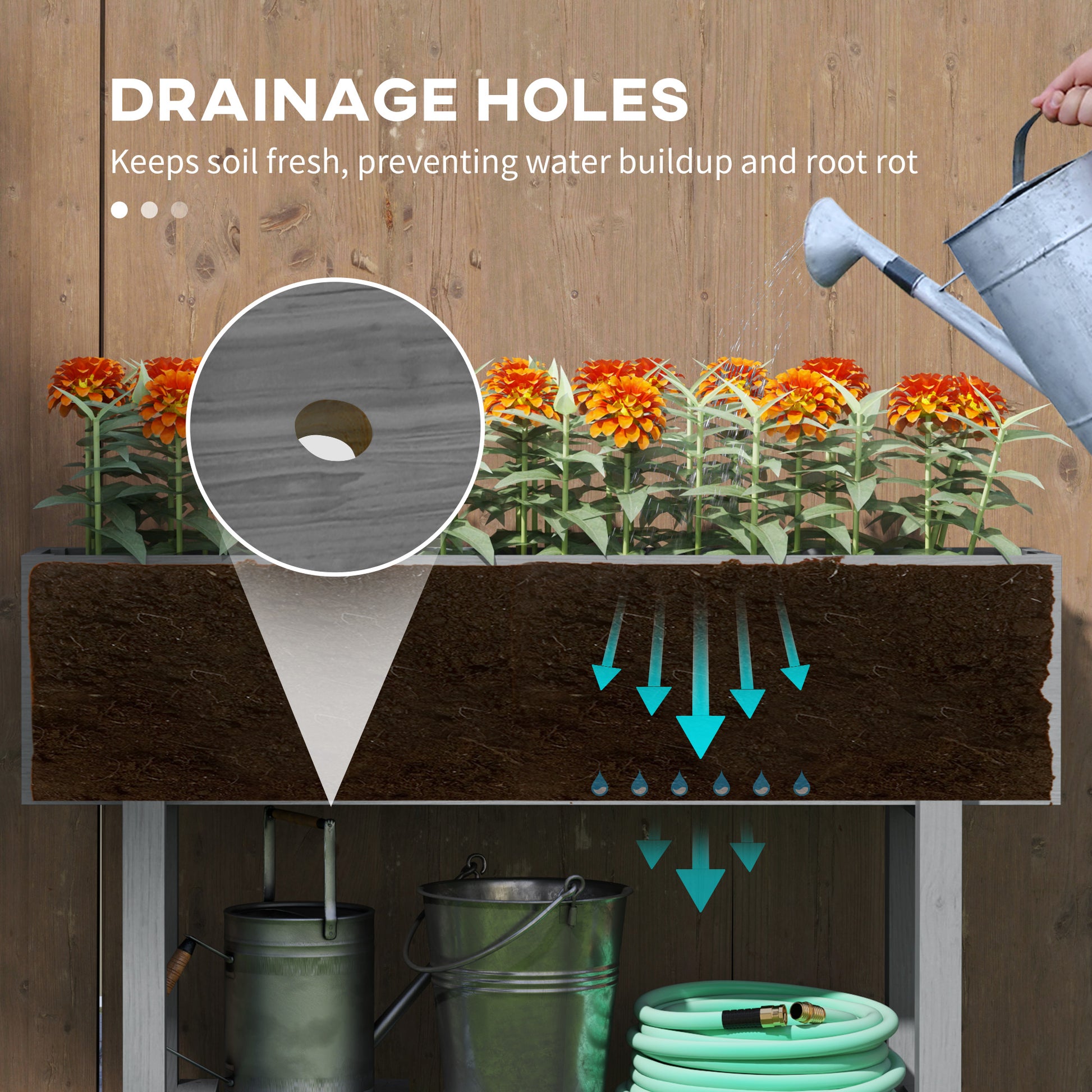Two drainage holes prevent the raised bed from becoming waterlogged, ensuring maximum growth and health for your plants.