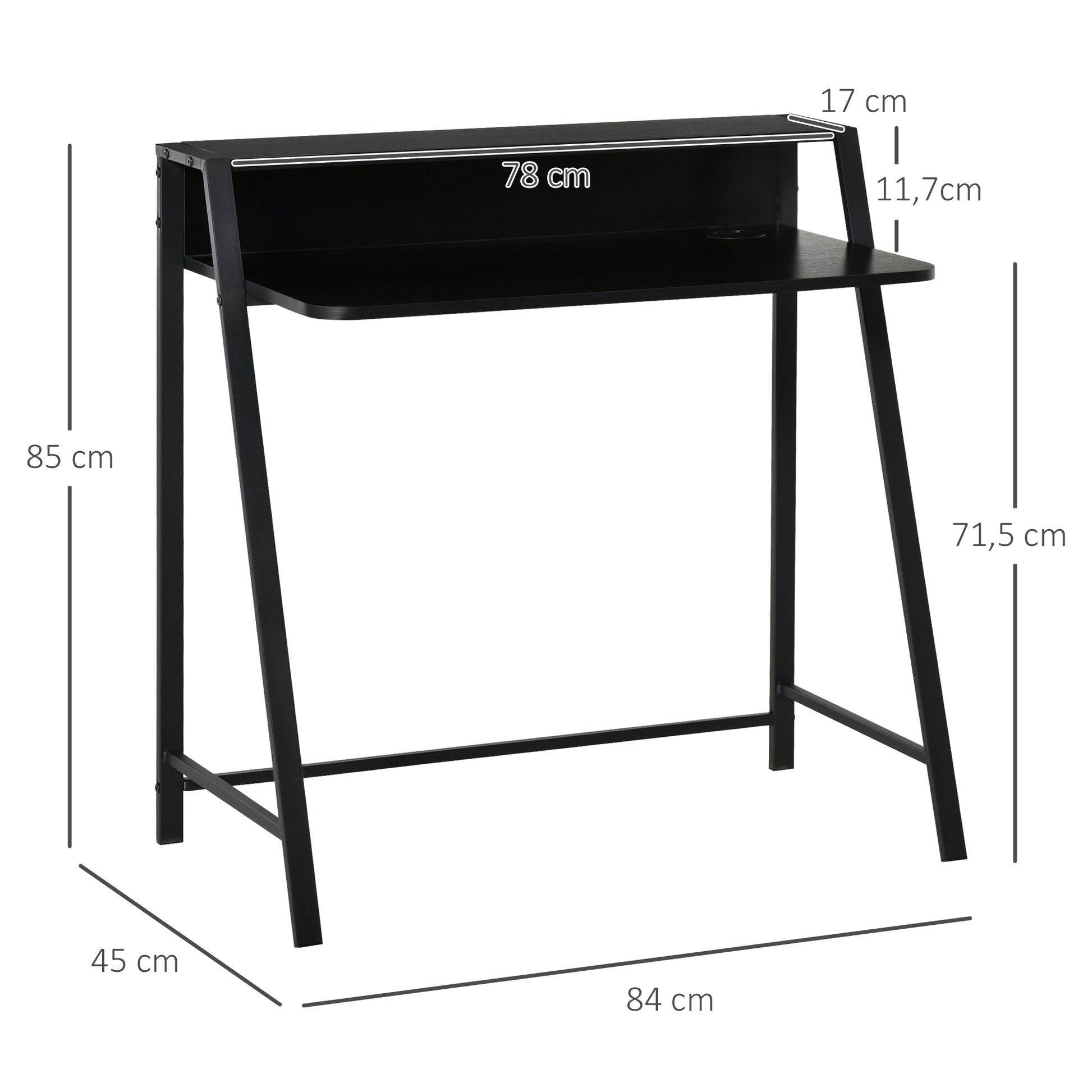 Two-tier design: Consists of a large flat desktop with a small shelf at the back, offering you space to work and keep all your essentials, such as stationery and paperwork, organized.