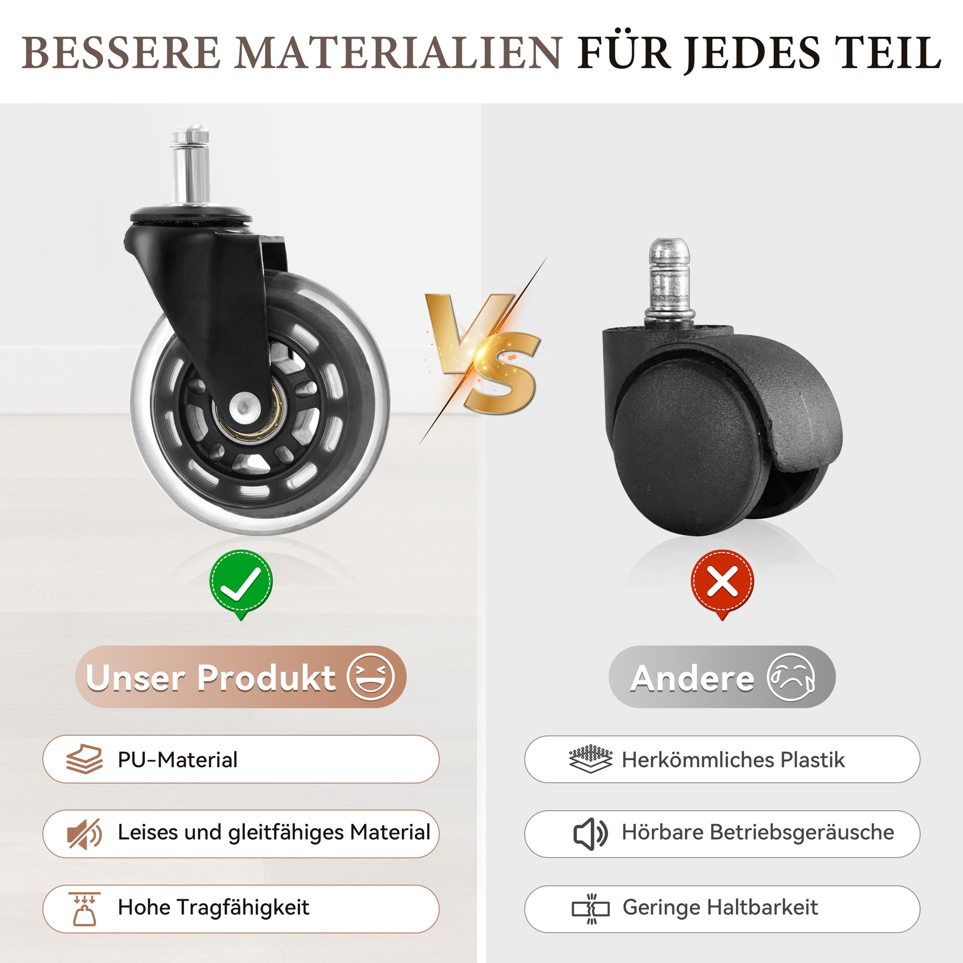 Constructed for comfort and durability, the chair features soft-touch PU leather and high-density foam padding. The solid wood and iron frame provides a maximum weight capacity of 110 kg (250 lbs). The gold-plated five-star base includes silent, anti-scratch casters to protect your floors.