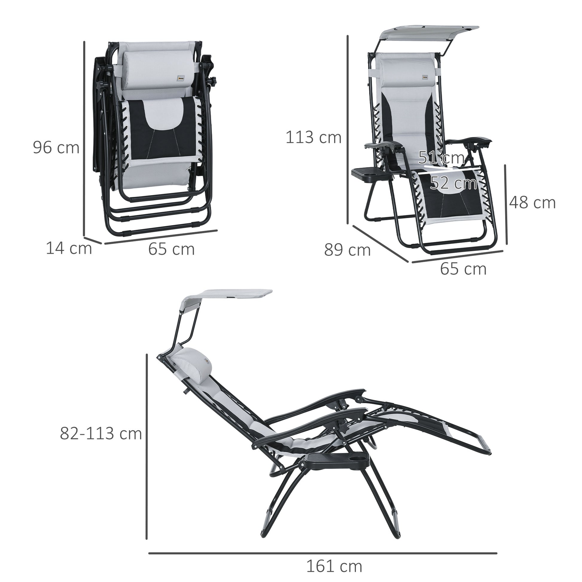 Zero Gravity Lounger Chair, Folding Reclining with Shade Cover & Cup Holder, Grey