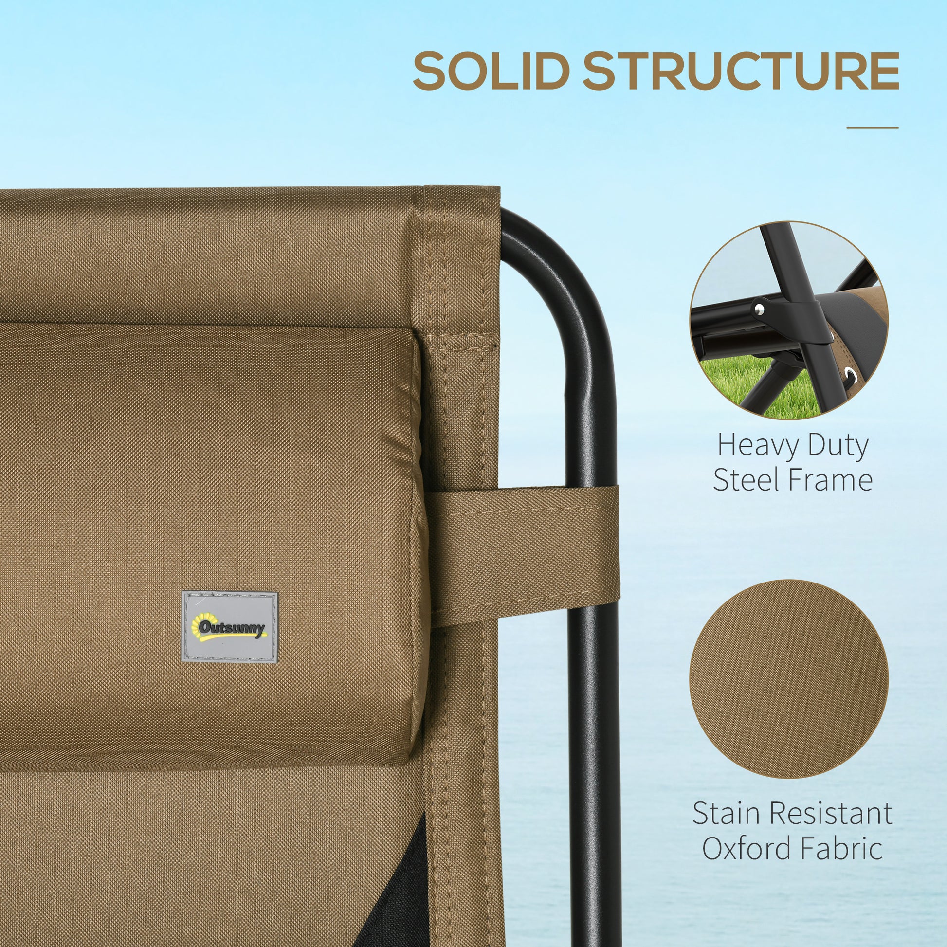 The steel frame is strong, anti-peeling, and corrosion resistant. The fabric seat provides supportive seating. The chairs are foldable for easy carrying and storage.