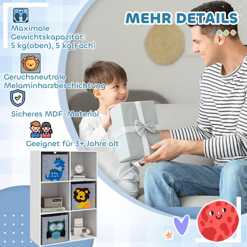 Six storage cubes: This children's bookshelf offers ample space for toys and other items, complemented by three drawers that help keep clutter hidden and the room clean and tidy.